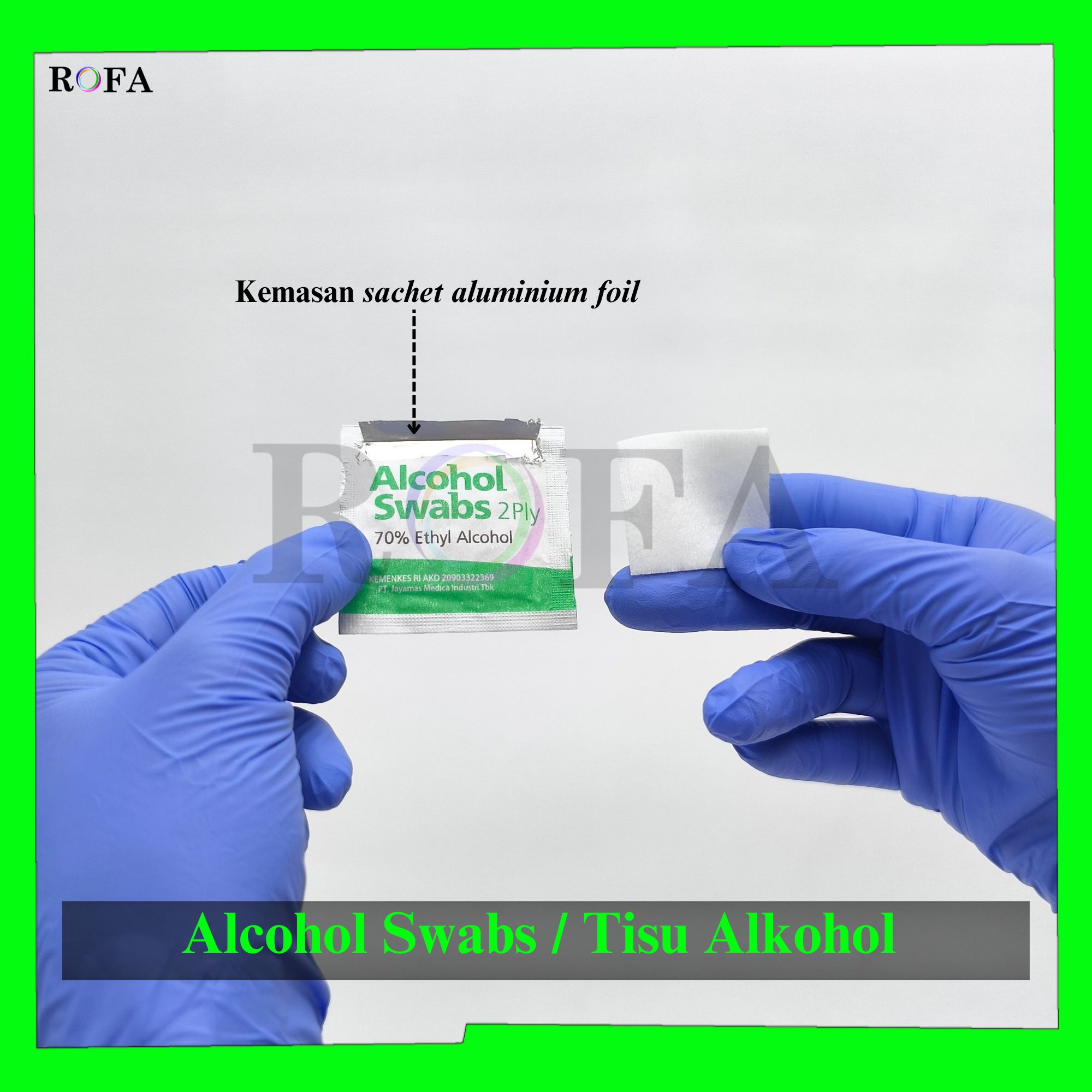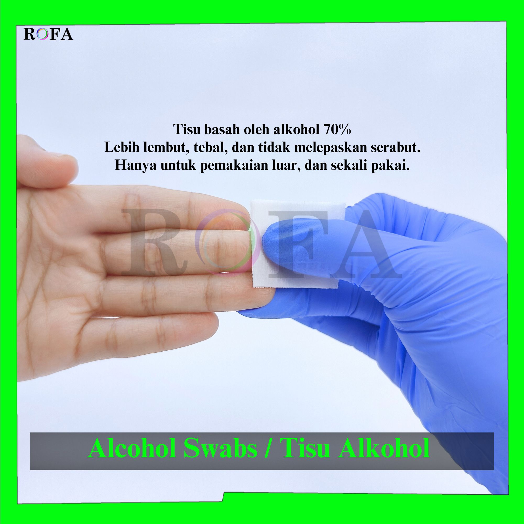 • Bahan: Etil alkohol 70%, dan tisu nonwoven