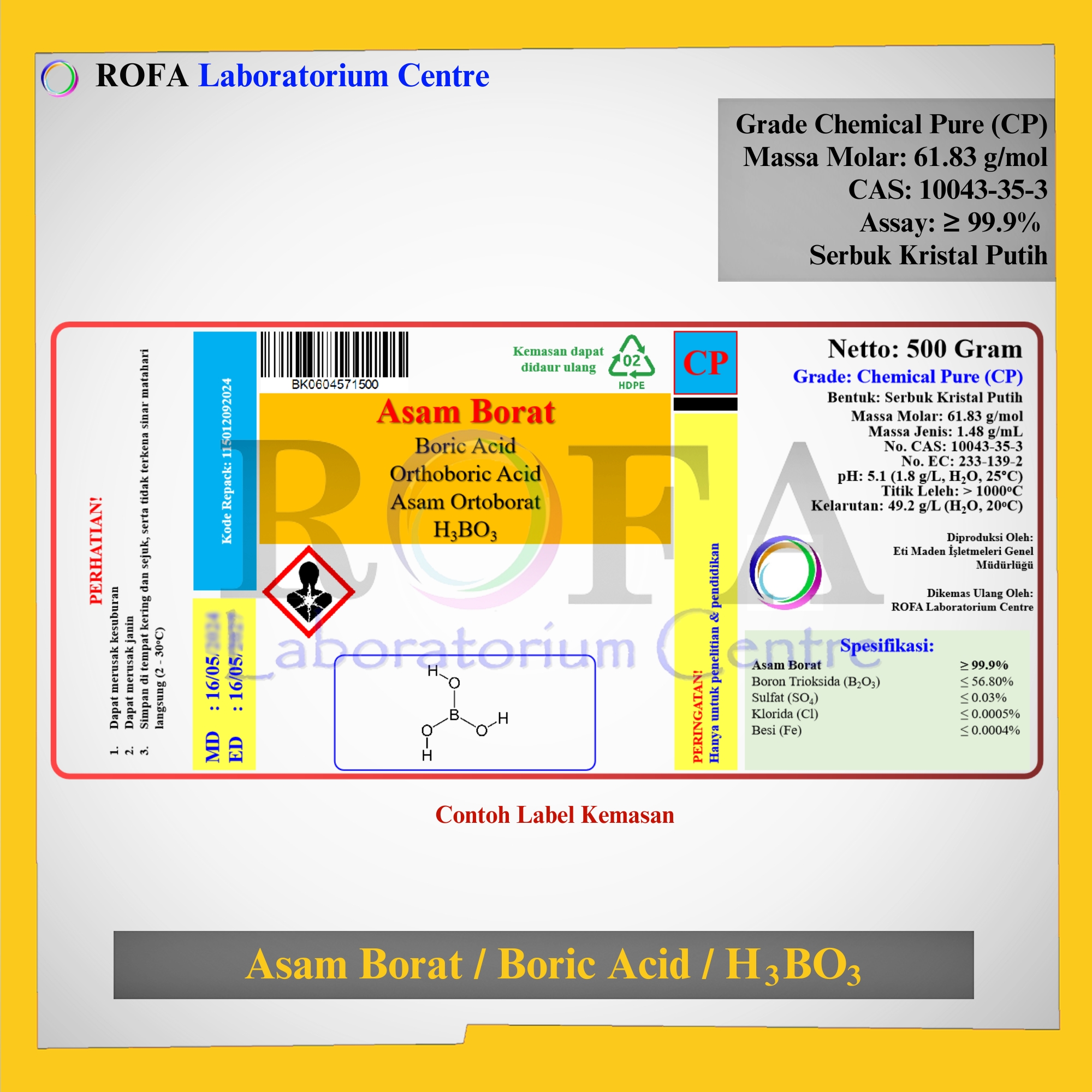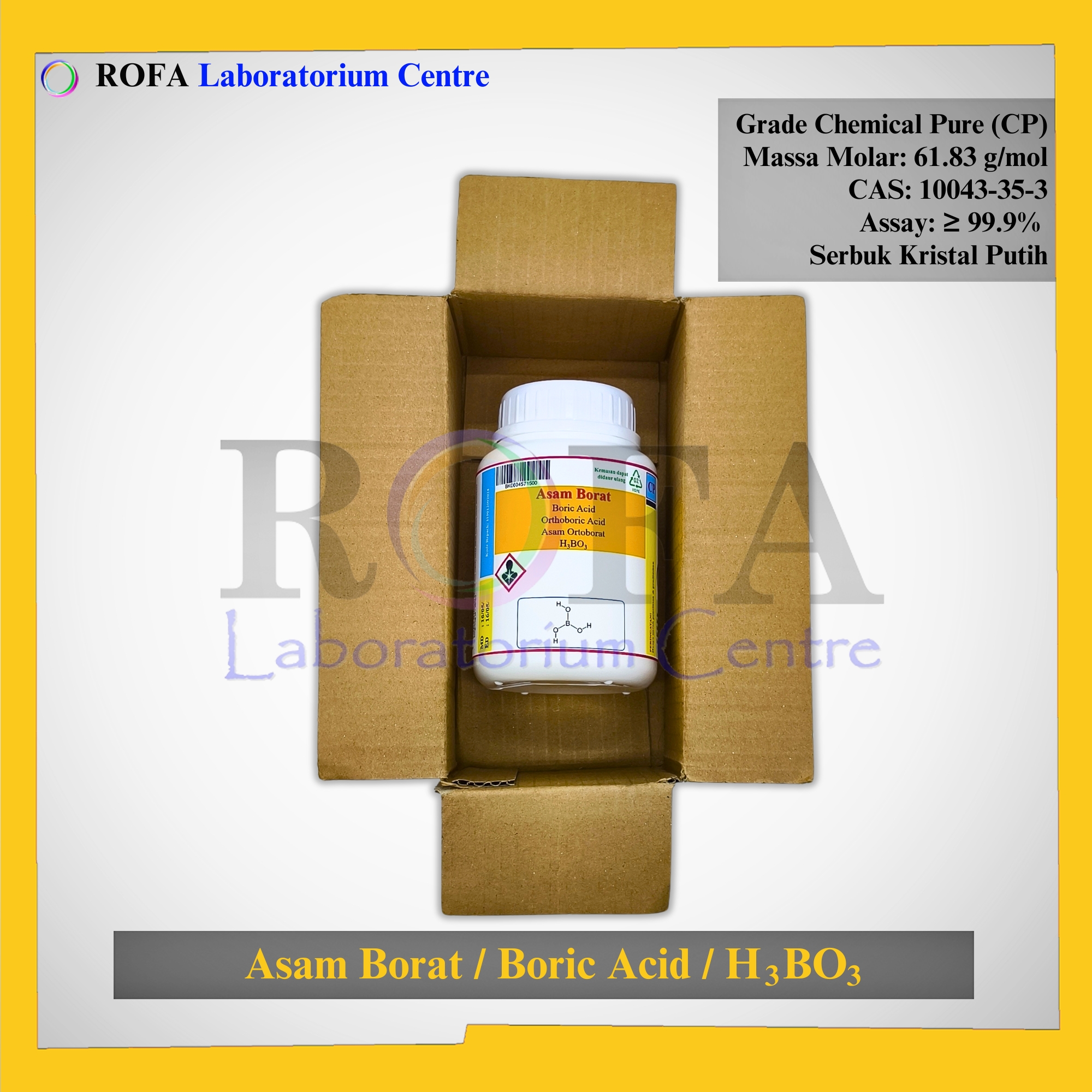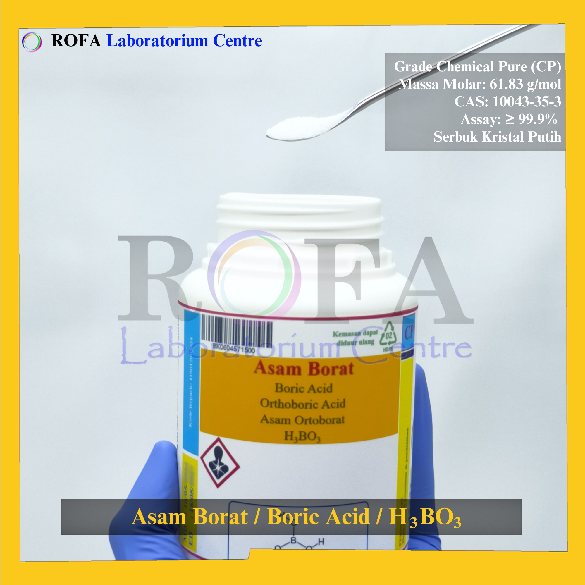 Nama Produk: ROFA Asam Borat / Boric Acid / Orthoboric Acid / H3BO3 CP 500 Gram