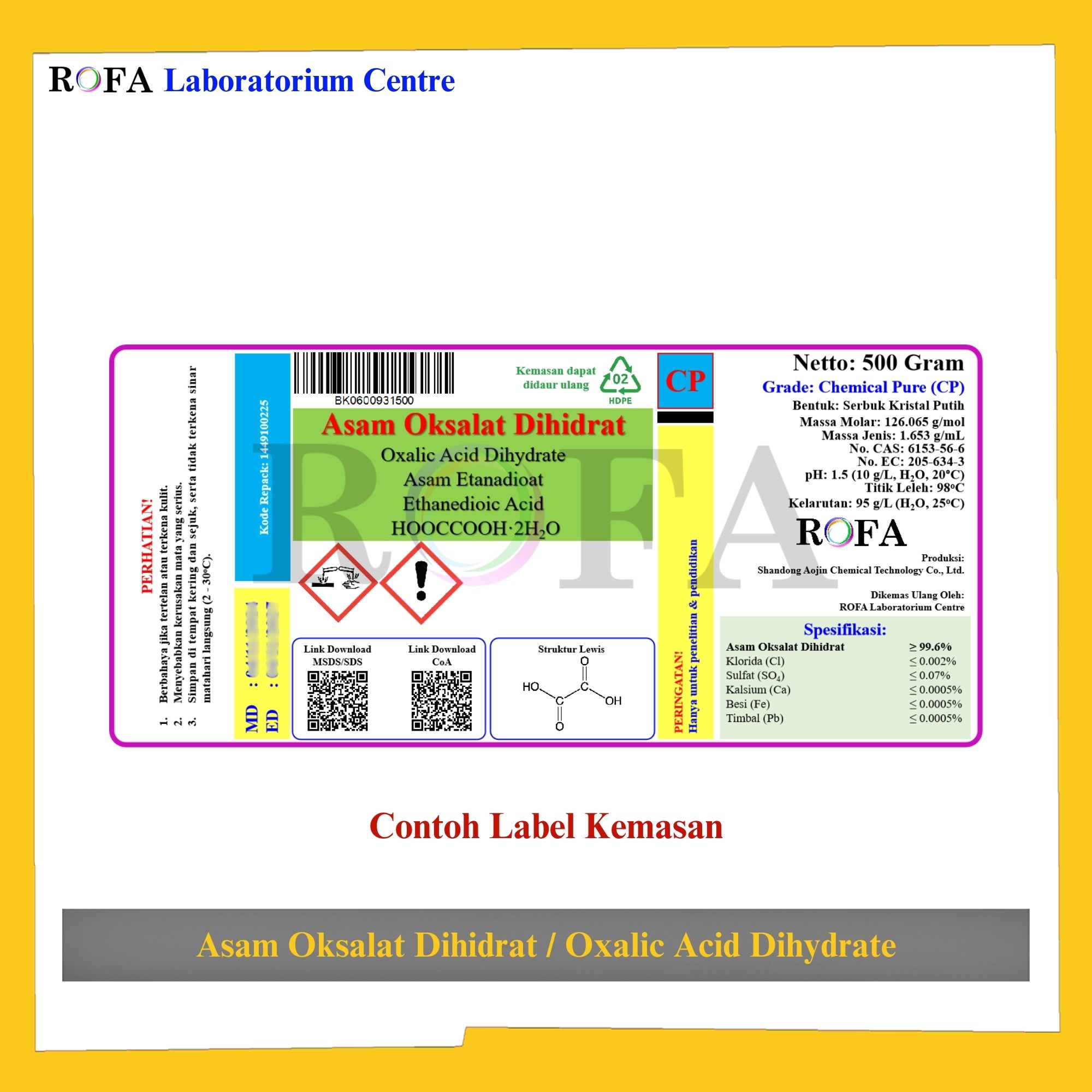 Nama Produk: ROFA Asam Oksalat Dihidrat / Oxalic Acid Dihydrate / H2C2O4.2H2O CP 500 Gram