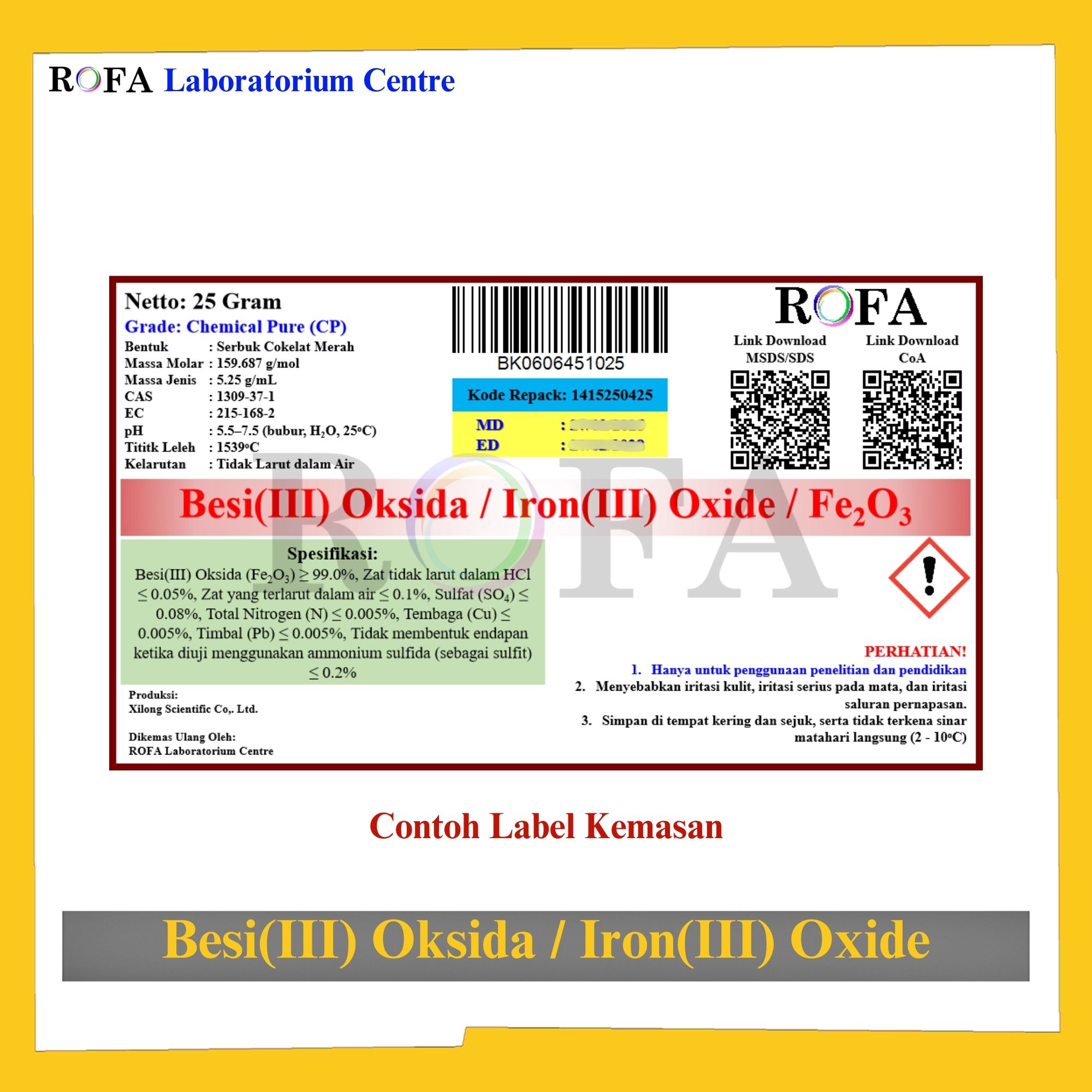 Nama Produk: ROFA Besi(III) Oksida / Iron(III) Oxide / Ferric Oxide / Red Iron Oxide / Fe2O3 CP 25 Gram