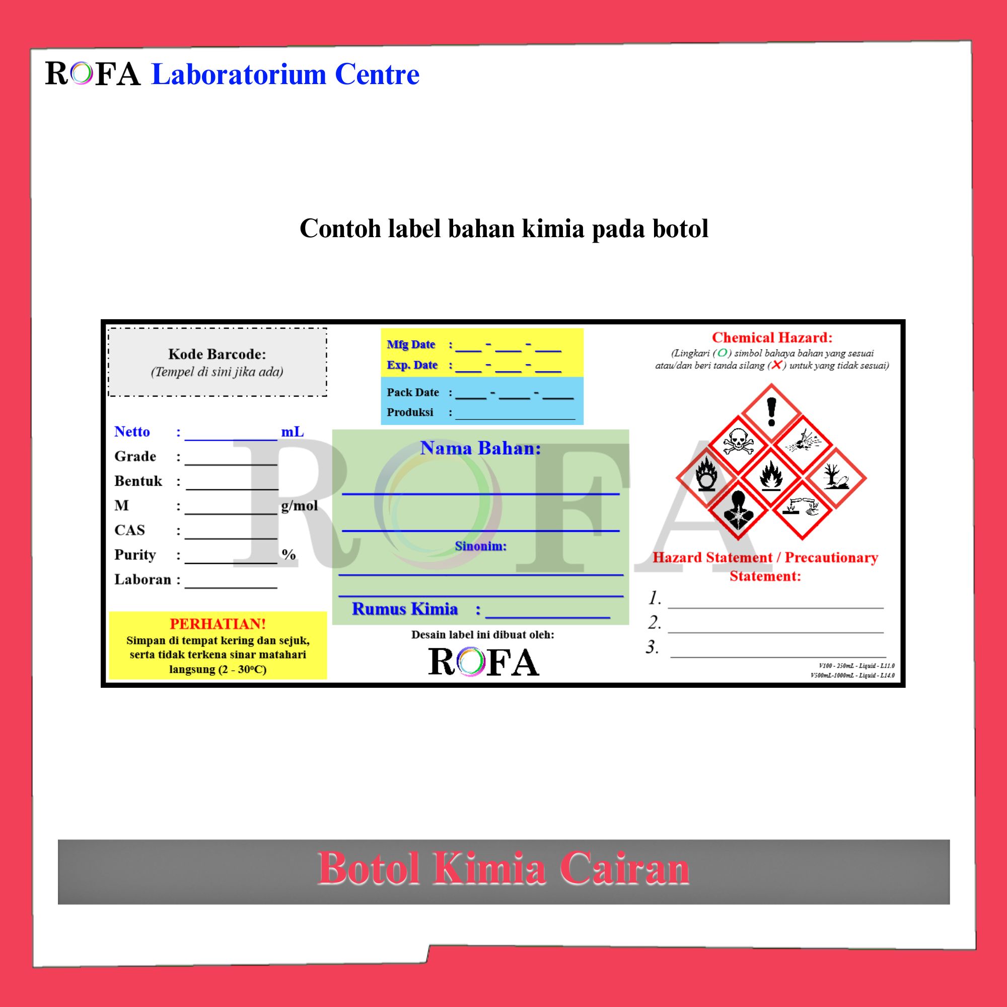 • Dilengkapi dengan etiket atau label bahan kimia (Gratis)