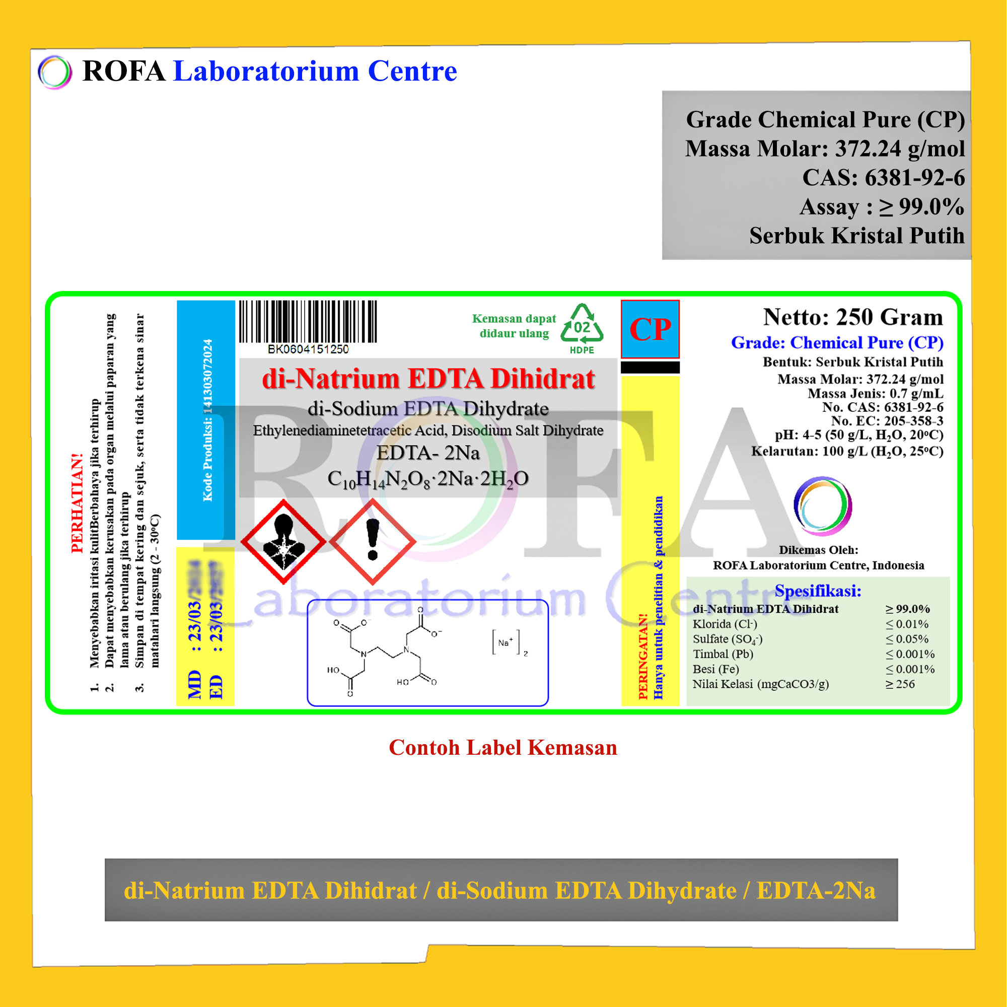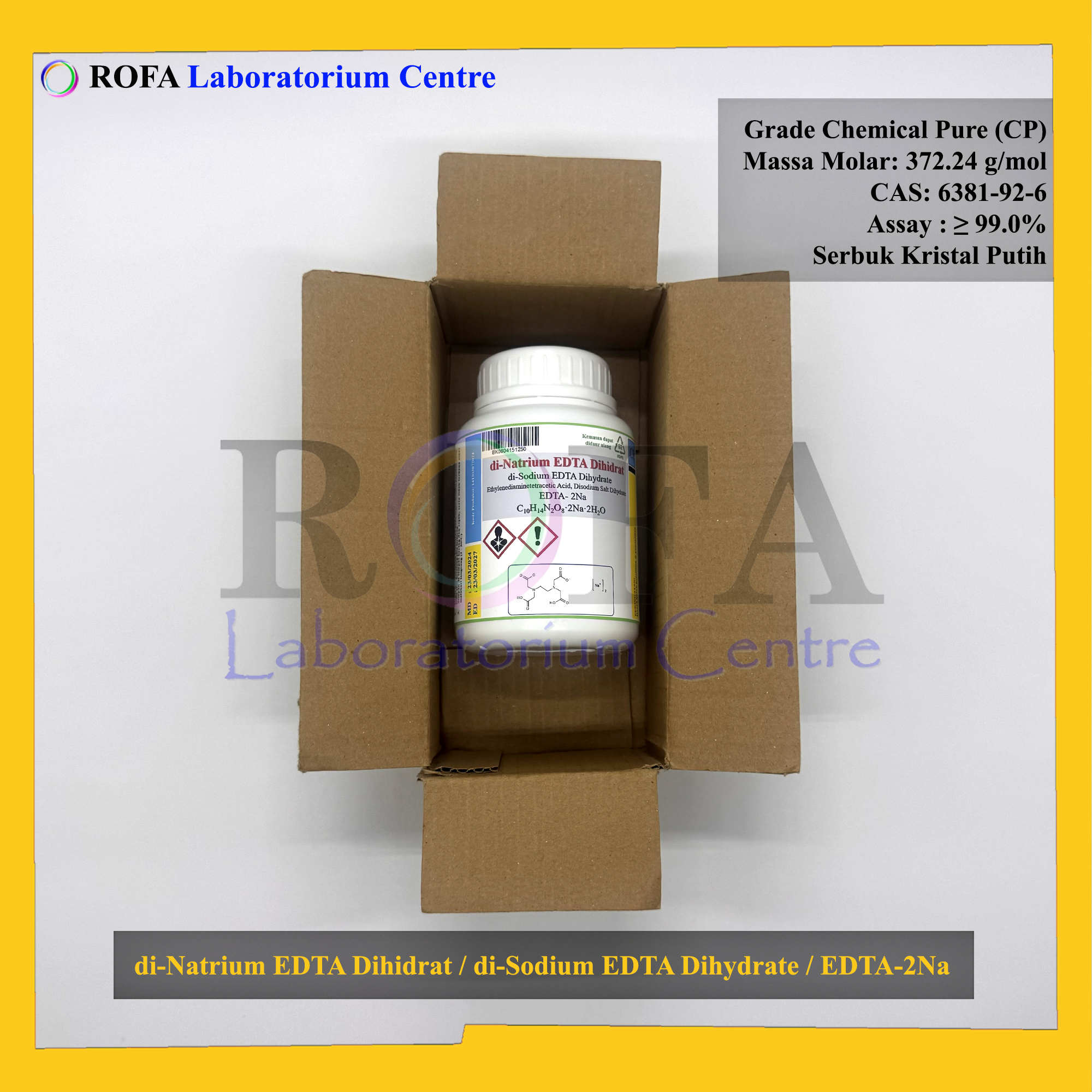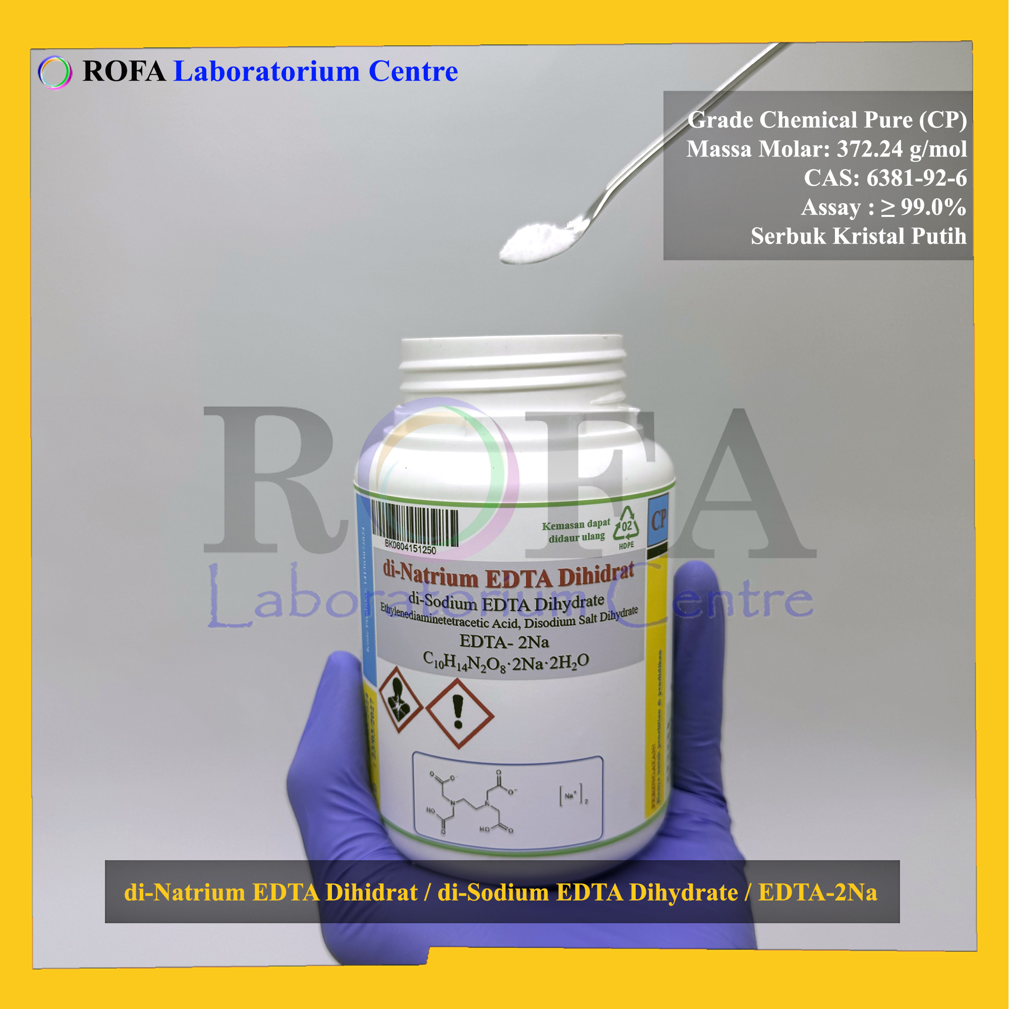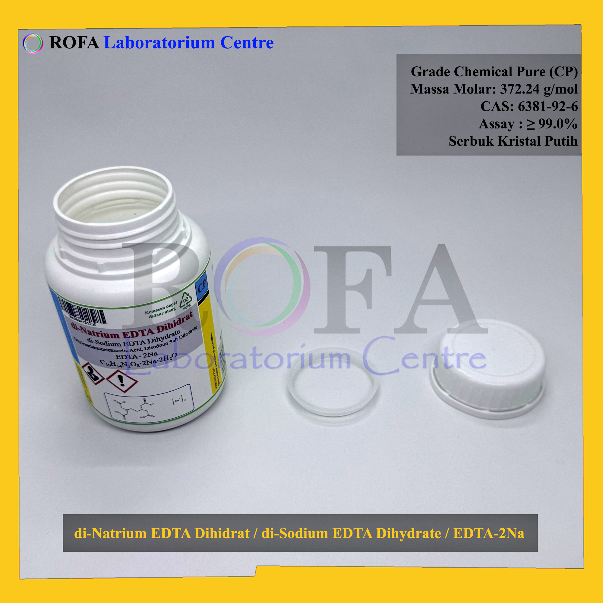 Nama Produk: ROFA di-Natrium EDTA Dihidrat / di-Sodium EDTA Dihydrate / EDTA / Natrium EDTA / EDTA-2Na CP 250 Gram