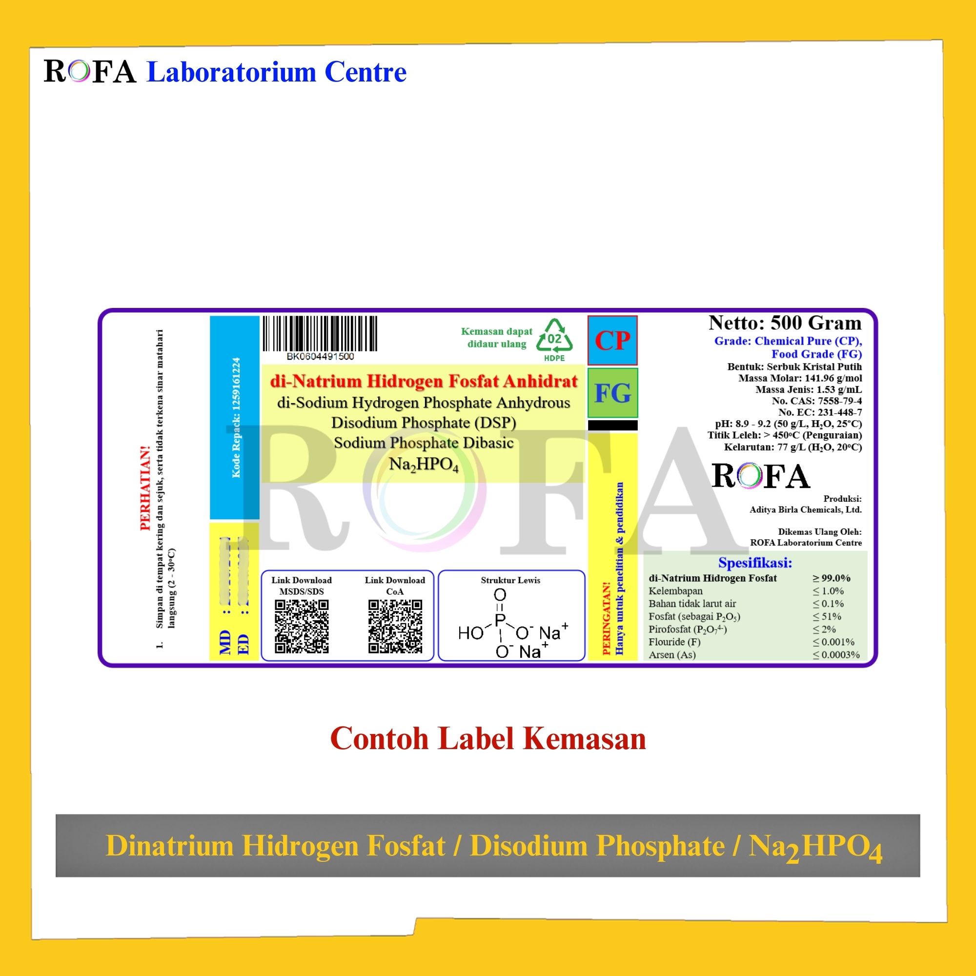 Nama Produk: ROFA Dinatrium Hidrogen Fosfat / Disodium Hydrogen Phosphate / Disodium Phosphate / Na2HPO4 CP 500 Gram