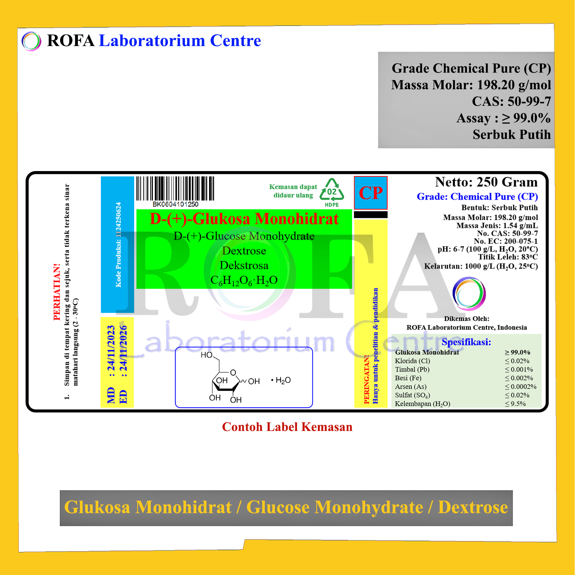 ROFA Glukosa Monohidrat / Glucose Monohydrate / Dextrose / Dekstrosa / C6H12O6.H2O CP 250 Gram