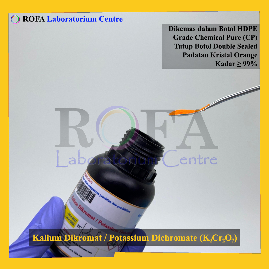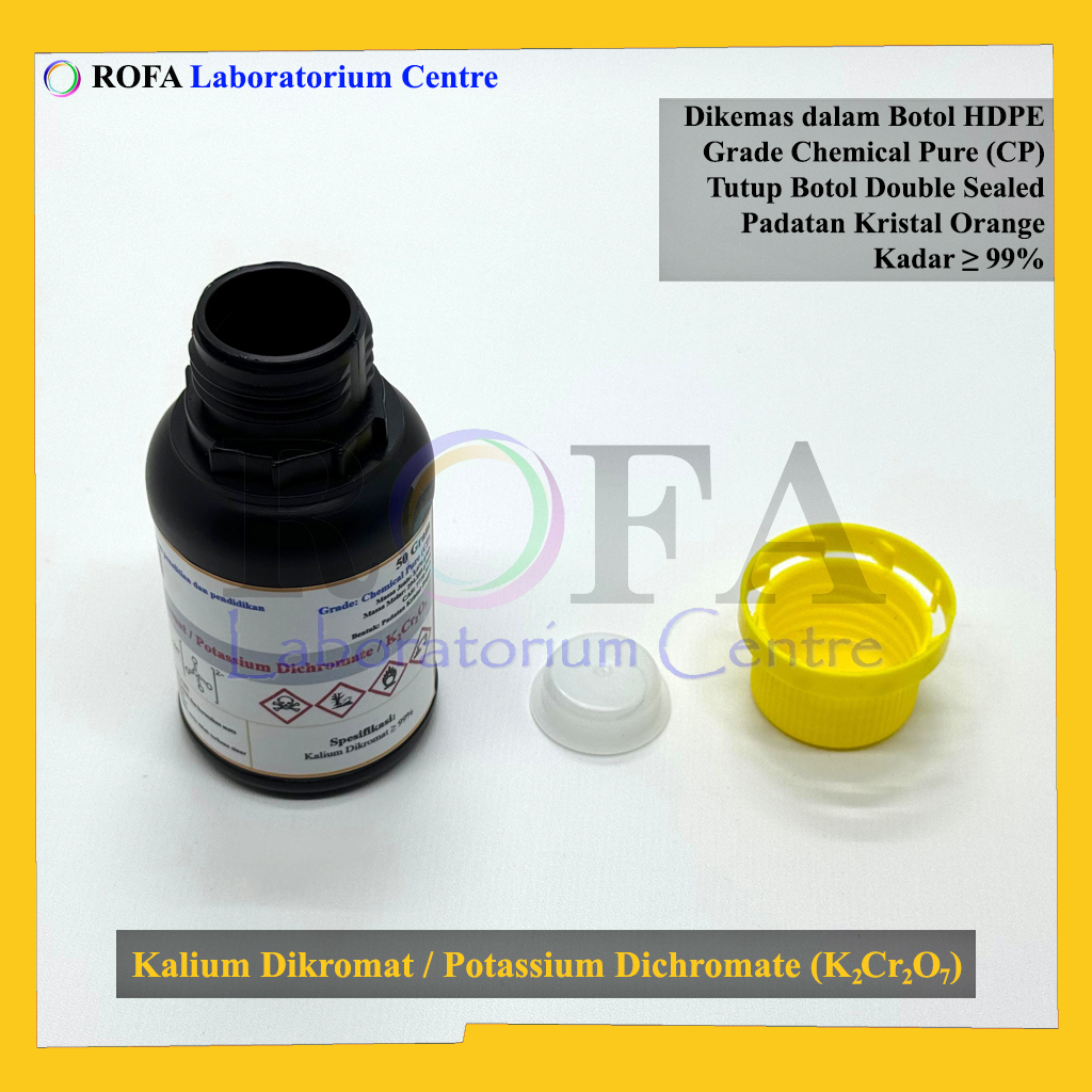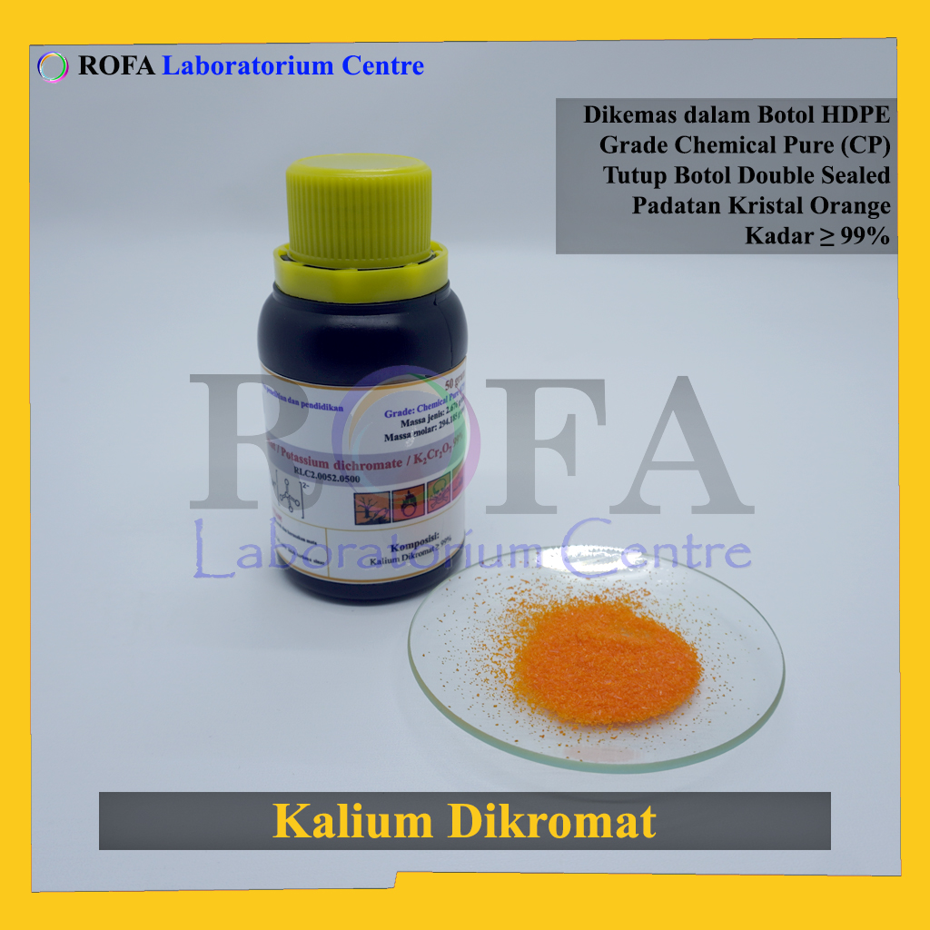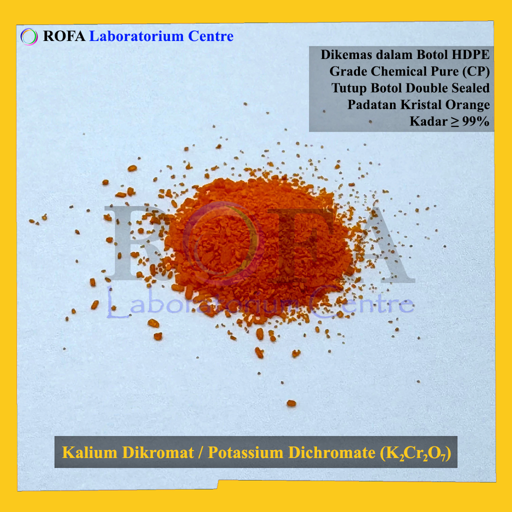 Nama Produk: ROFA Kalium Dikromat / Potassium Dichromate / K2Cr2O7 CP 50 Gram