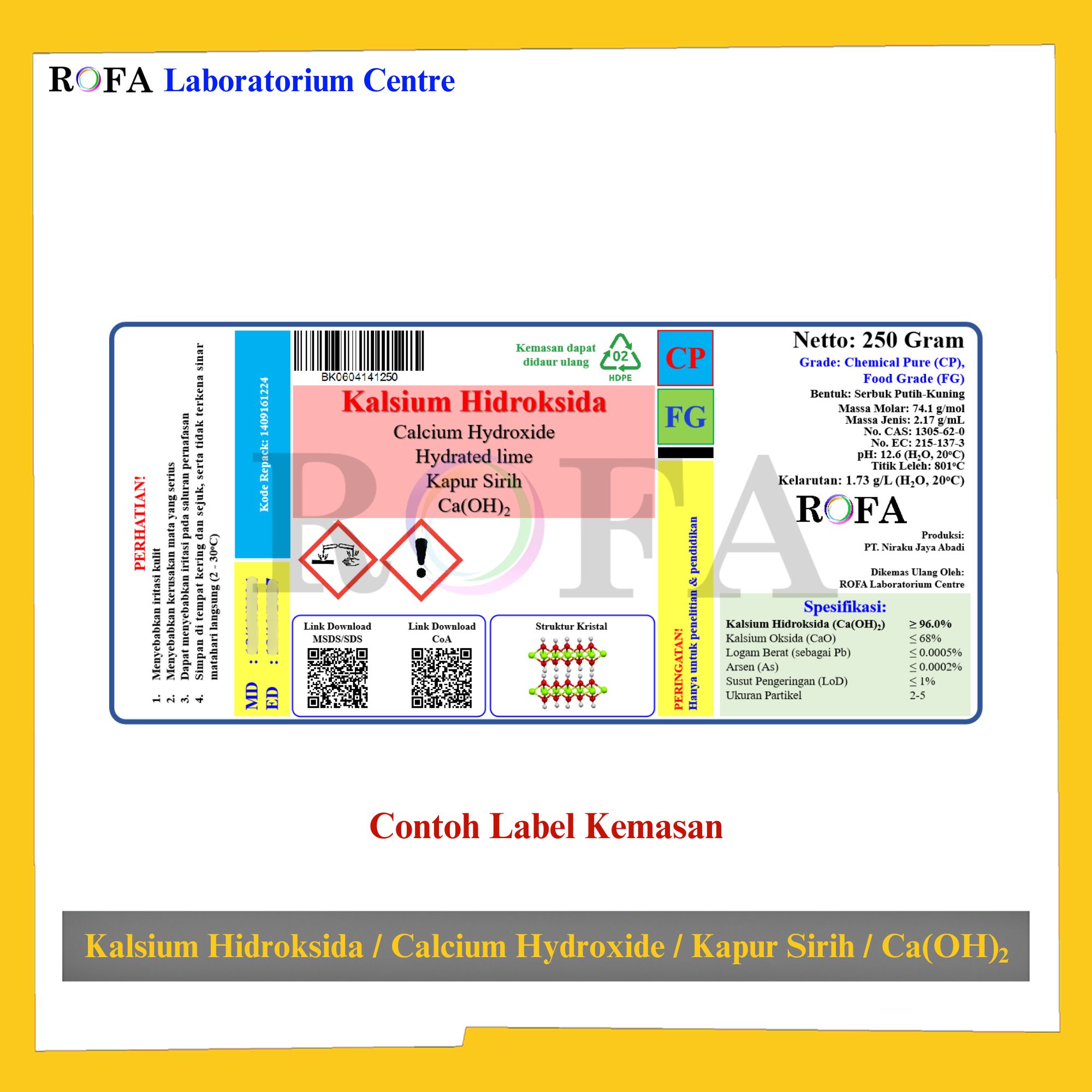 Nama Produk: ROFA Kalsium Hidroksida / Calcium Hydroxide / Kapur Sirih / Ca(OH)2 CP 250 Gram