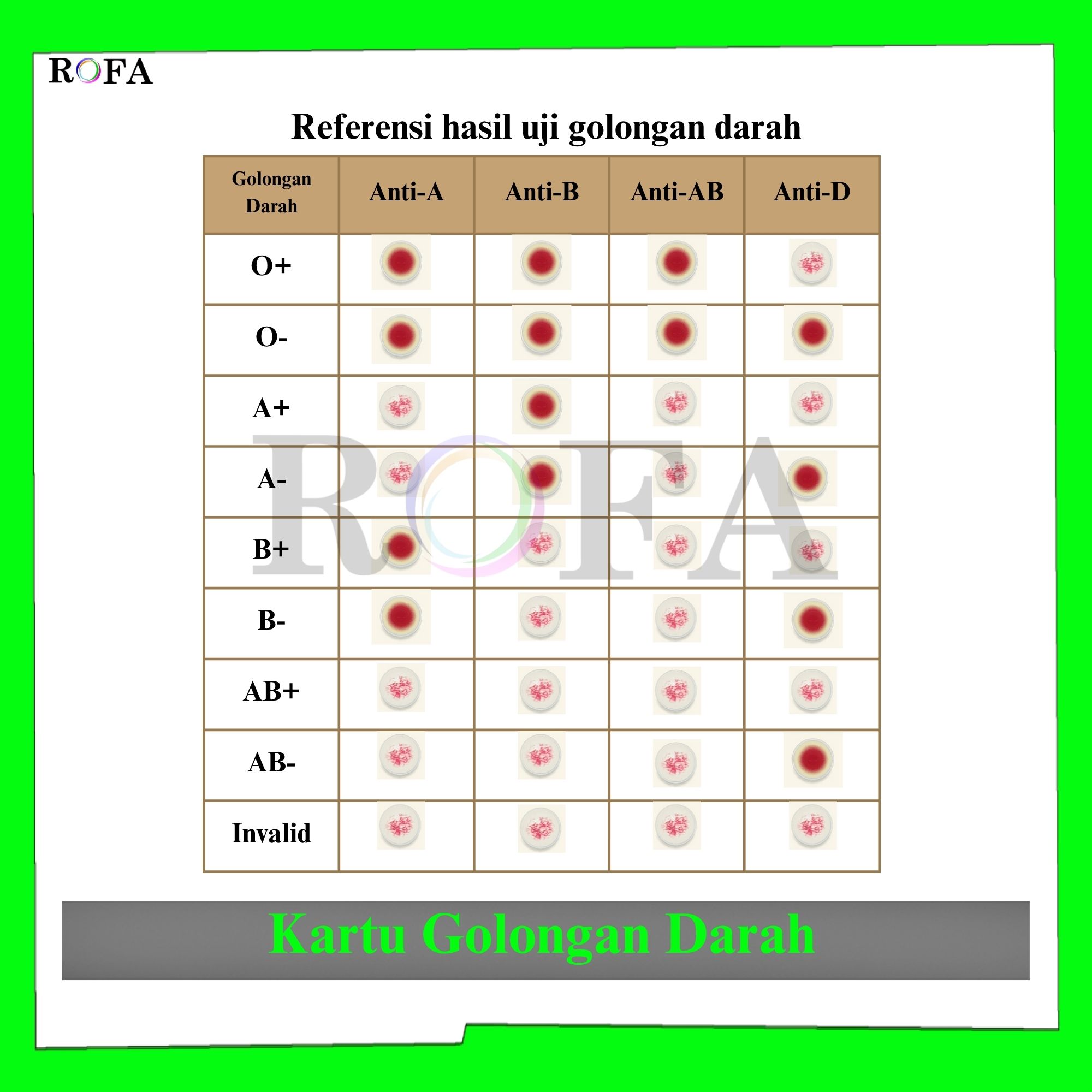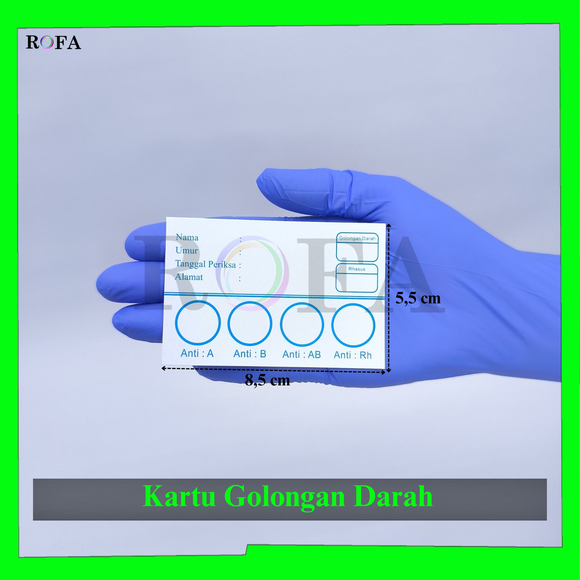 Nama Produk : ROFA Kartu Golongan Darah / Kartu Tes Darah / Uji Golongan Darah / Kartu Darah / Blood Card 100 Pcs Merk: ROFA SPESIFIKASI: Bahan: Kertas Karton Semi Glossy 200 gsm Ukuran...