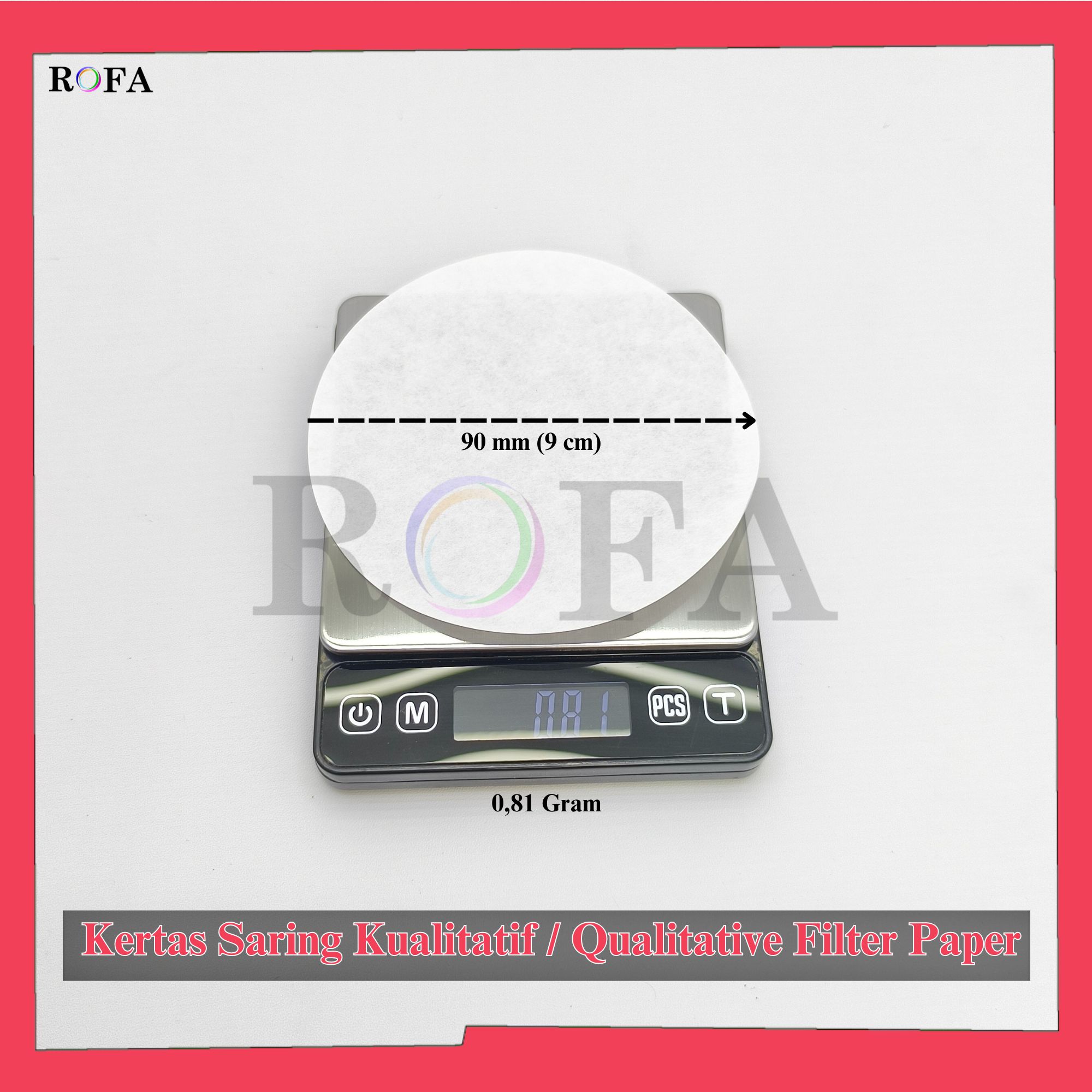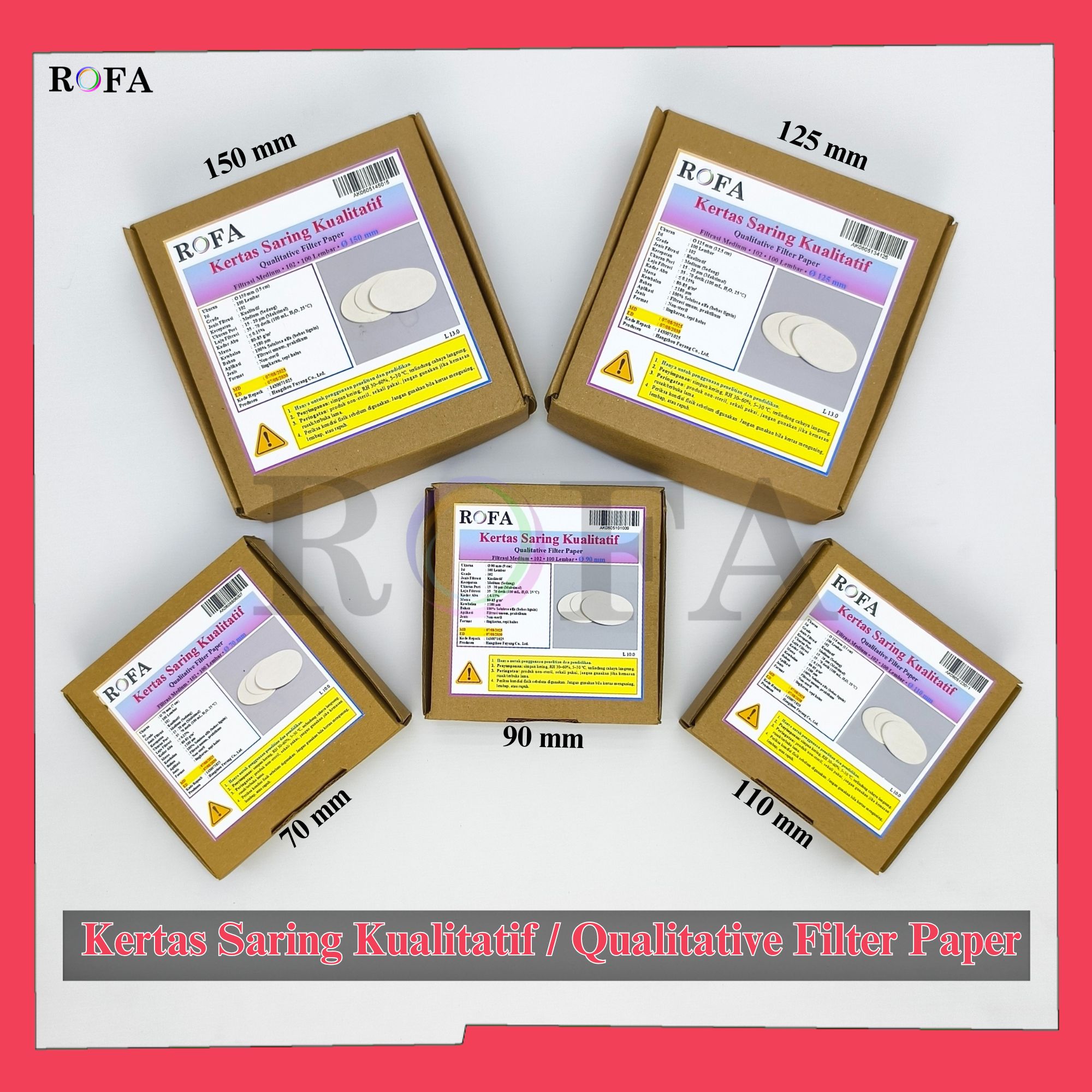 Nama Produk: ROFA Kertas Saring Kualitatif / Qualitative Filter Paper / Kertas Saring Laboratorium Medium Speed 7 – 15 cm 100 Lembar
