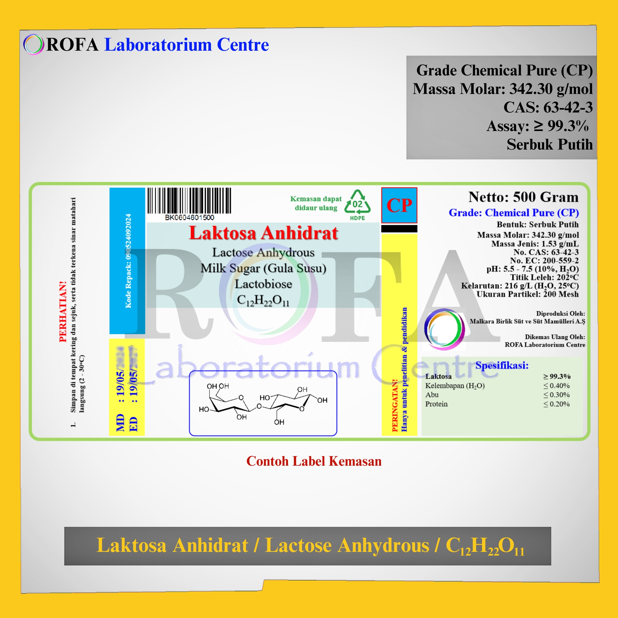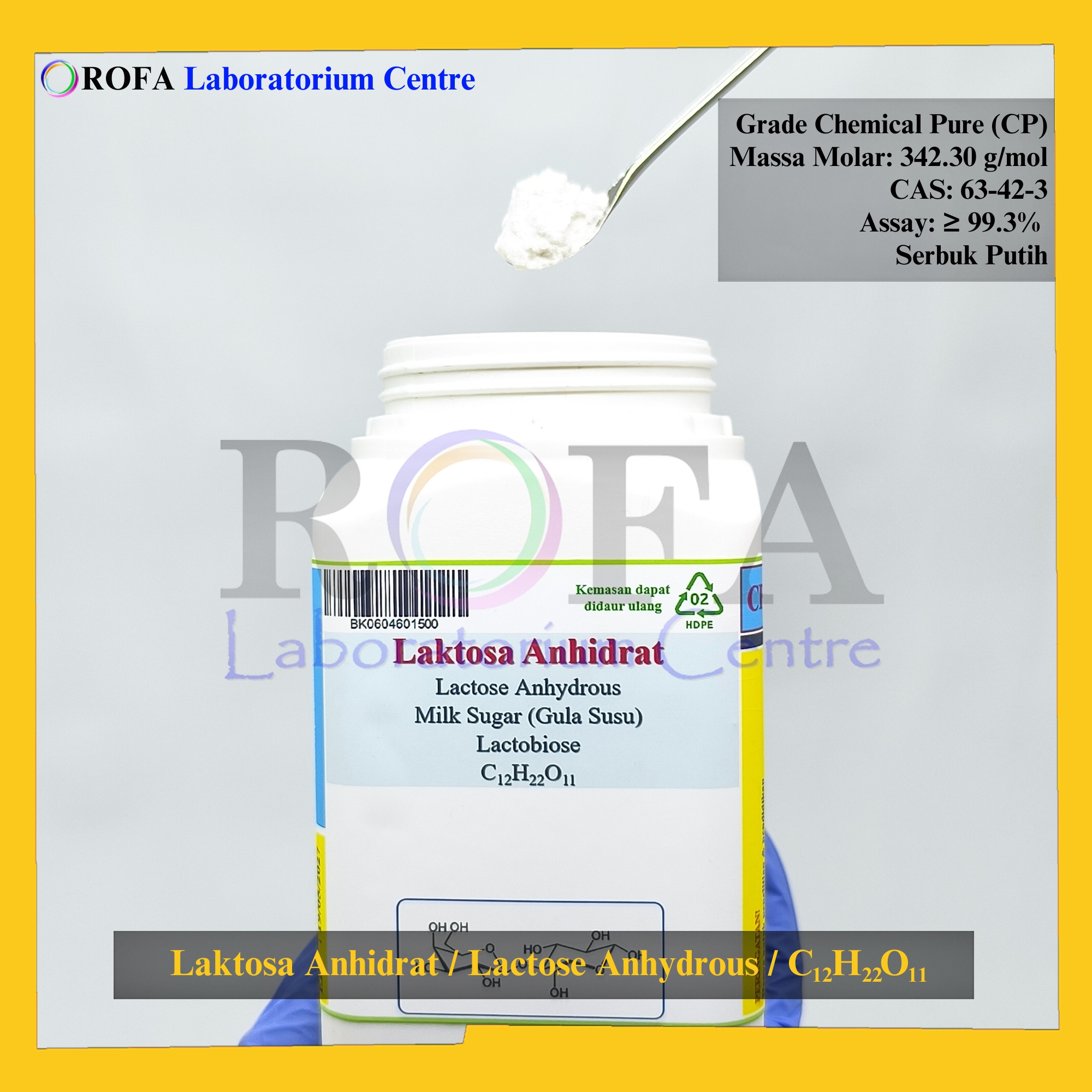 Nama Produk: ROFA Laktosa Anhidrat / Lactose Anhydrous / C12H22O11 CP 500 Gram Brand / Merek: ROFA, Bandung NON CoA NON MSDS   SPESIFIKASI: Rumus Kimia: C12H22O11 Netto: 500 Gram Grade: CP (Chemical Pure) Bentuk:...