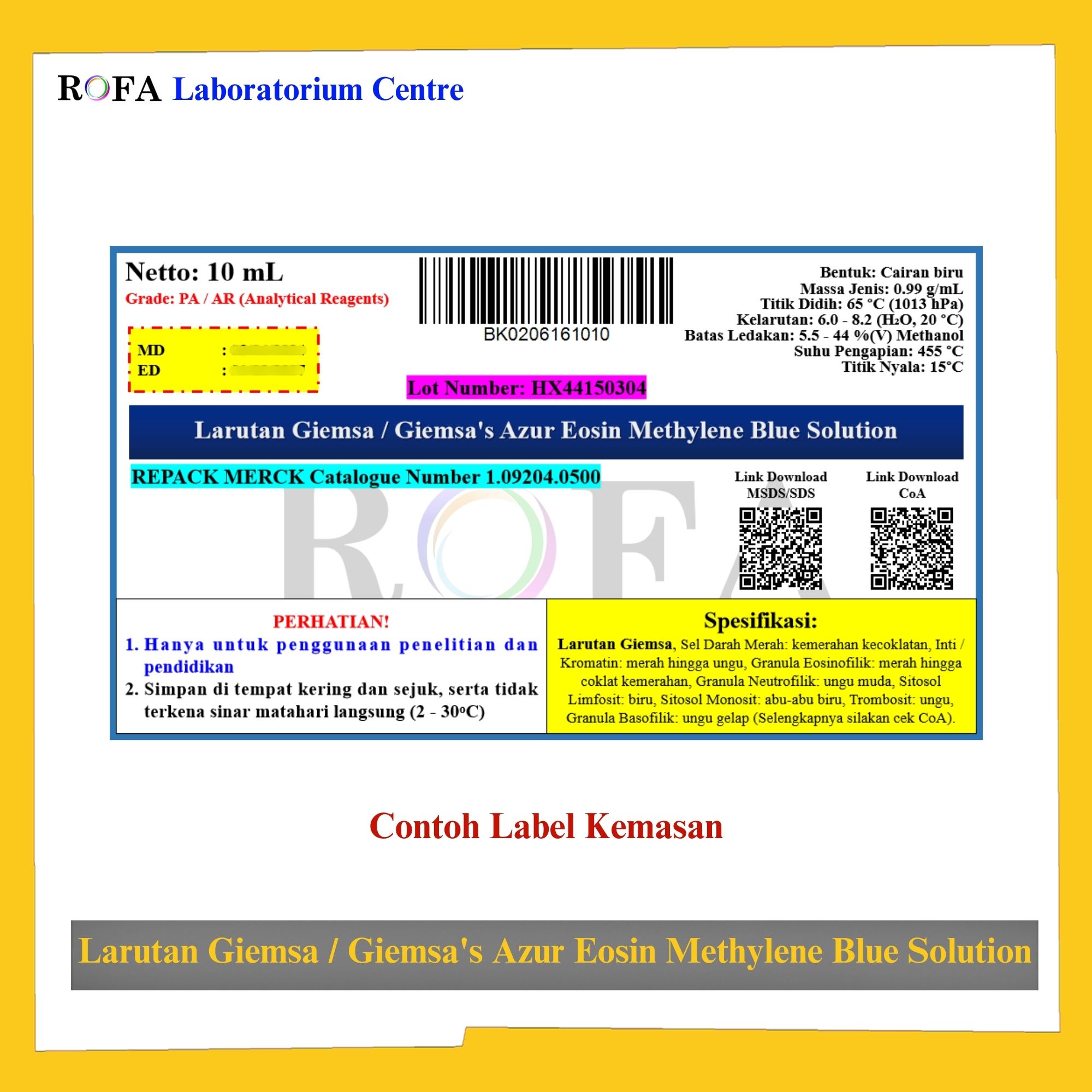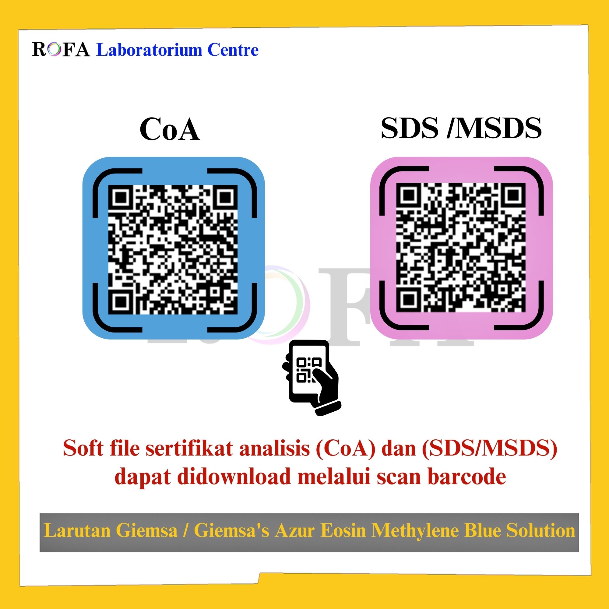 Lengkap dengan dokumen sertifikat analisis (CoA) dan MSDS / SDS (dikirim bersama barang atau bisa scan barcode).
