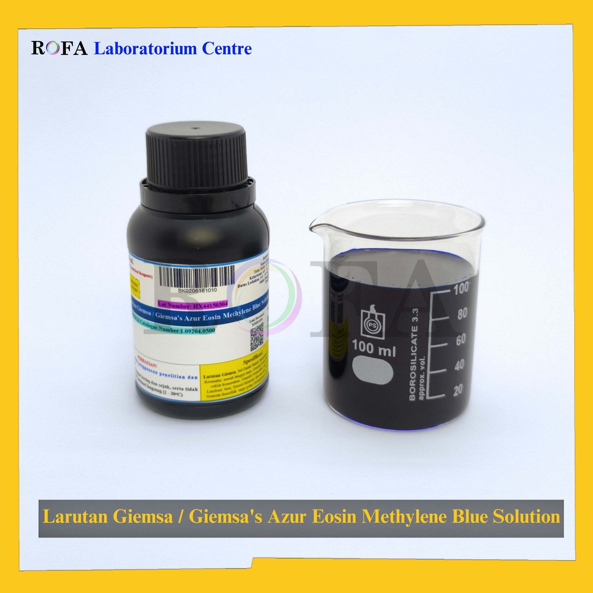Giemsa’s Azur Eosin Methylene Blue Solution adalah pewarna kombinasi yang sangat umum dipakai di laboratorium mikroskopi hematologi dan mikrobiologi, terutama untuk pewarnaan darah dan jaringan. Mengandung Azur, Eosin, dan metilen biru dalam pelarut metanol, akuades dan gliserol.