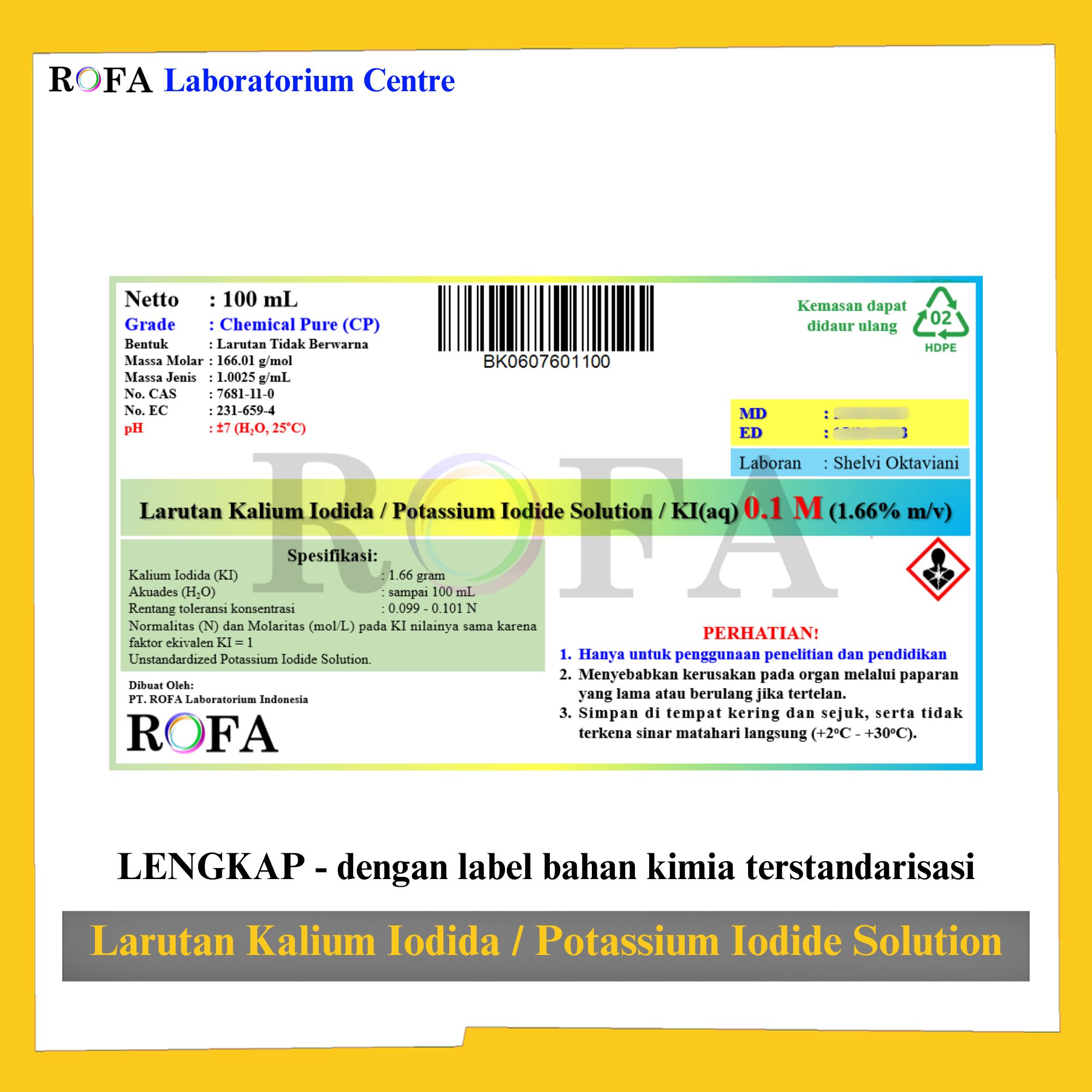 Nama Produk: ROFA Larutan Kalium Iodida / Potassium Iodide Solution / KI Cairan 0.1 M – 50% 25 mL – 100 mL