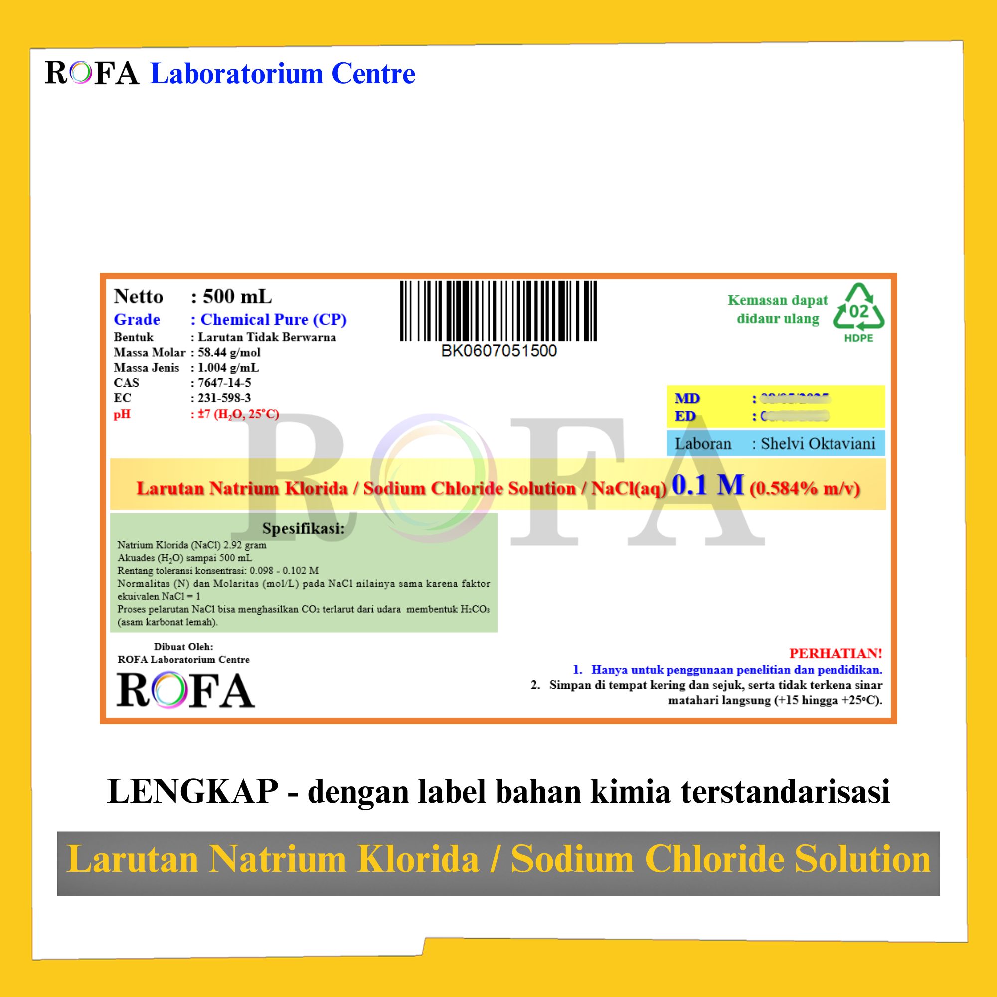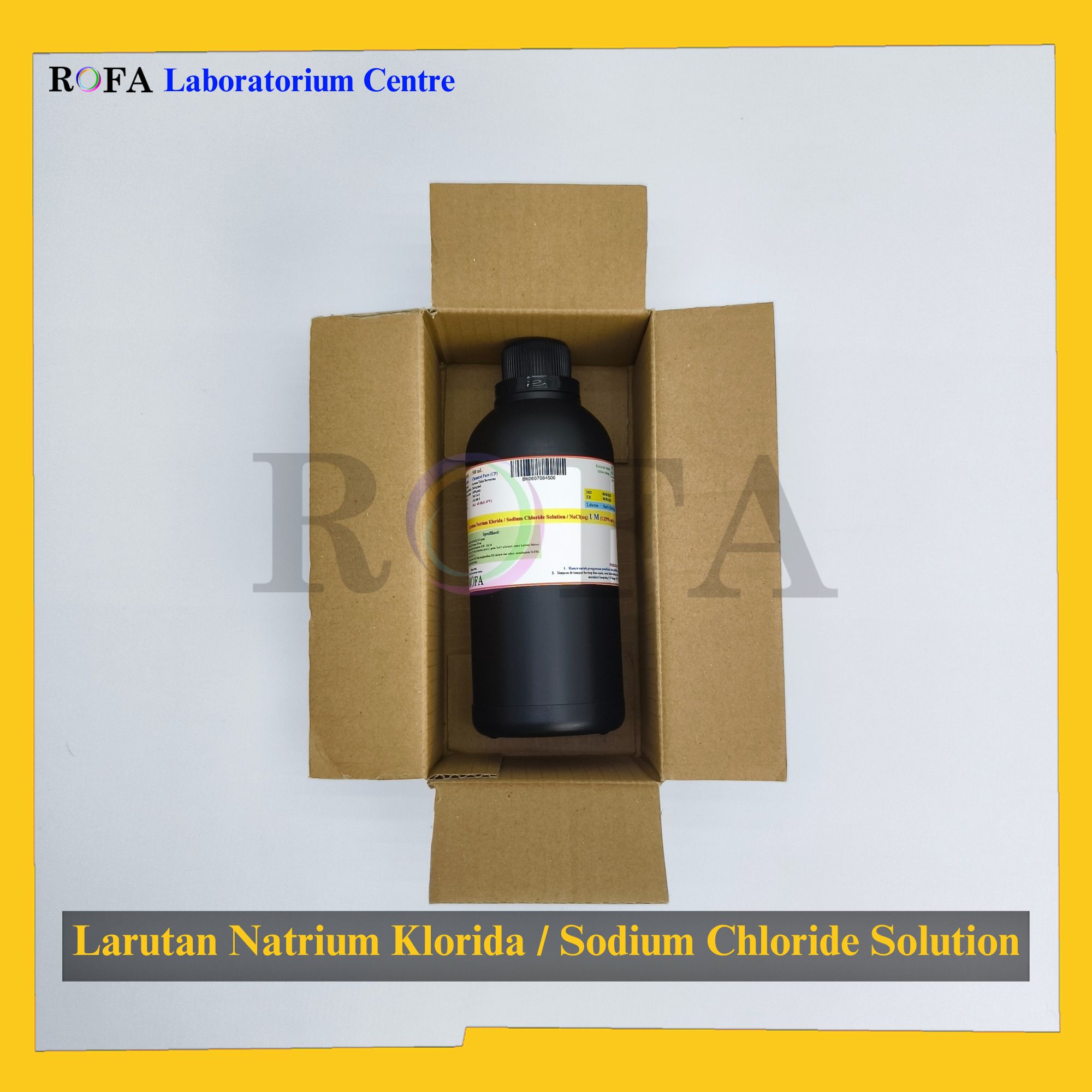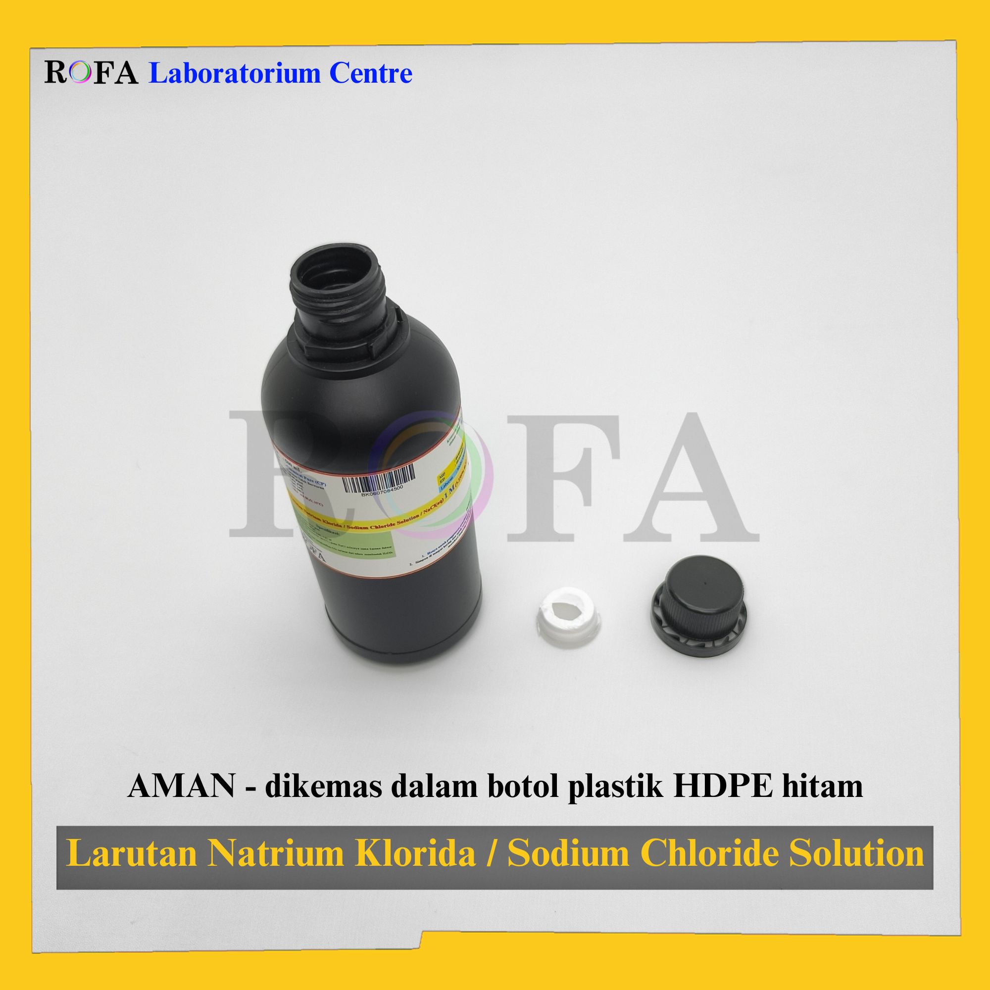 Nama Produk: ROFA Larutan NaCl / Larutan Natrium Klorida / Sodium Chloride Solution / NaCl Cairan CP 0.1 M – 36% 500 mL