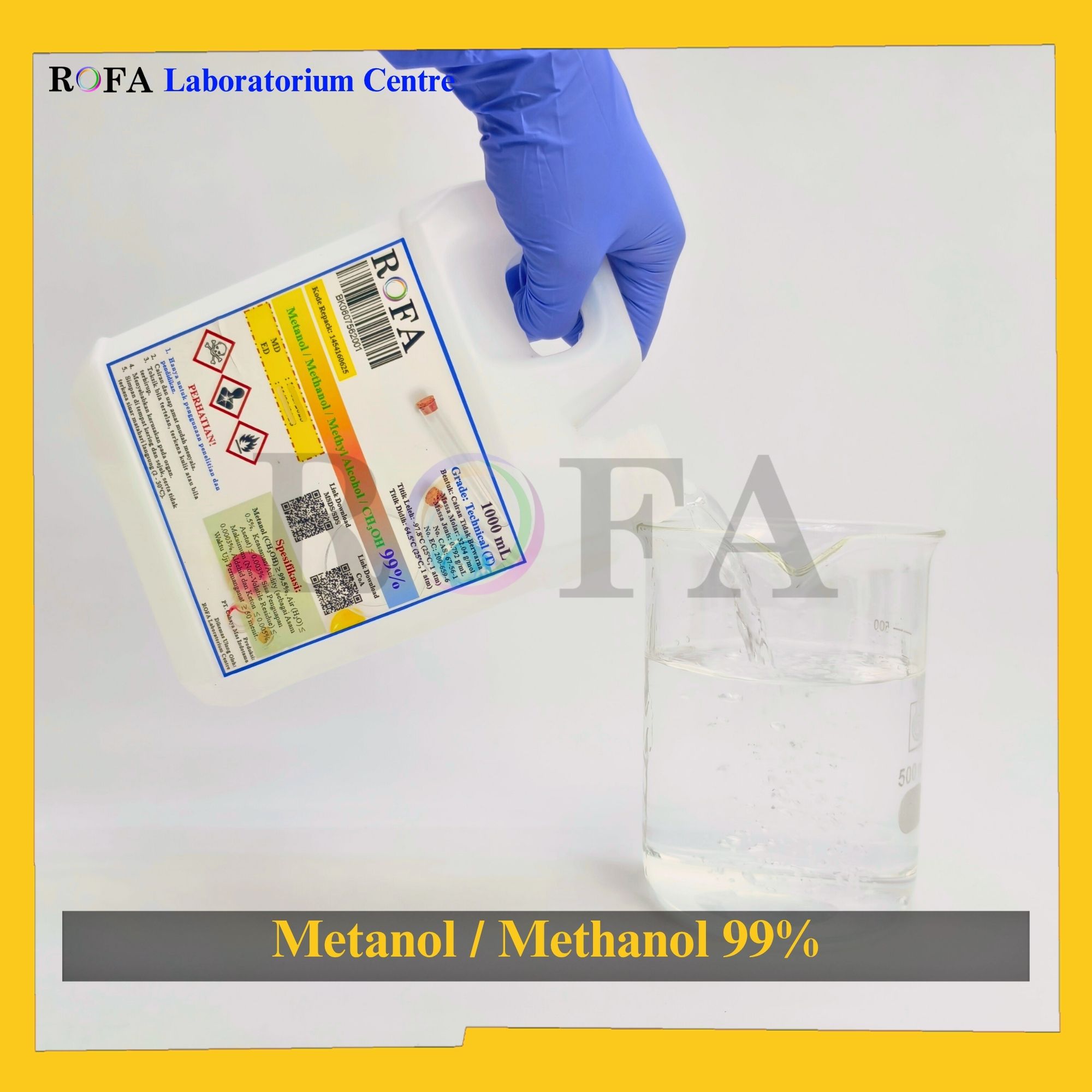 Nama Produk: ROFA Metanol / Metil Alkohol / Methanol / Methyl Alcohol / CH3OH 99% 500 – 5000 mL
