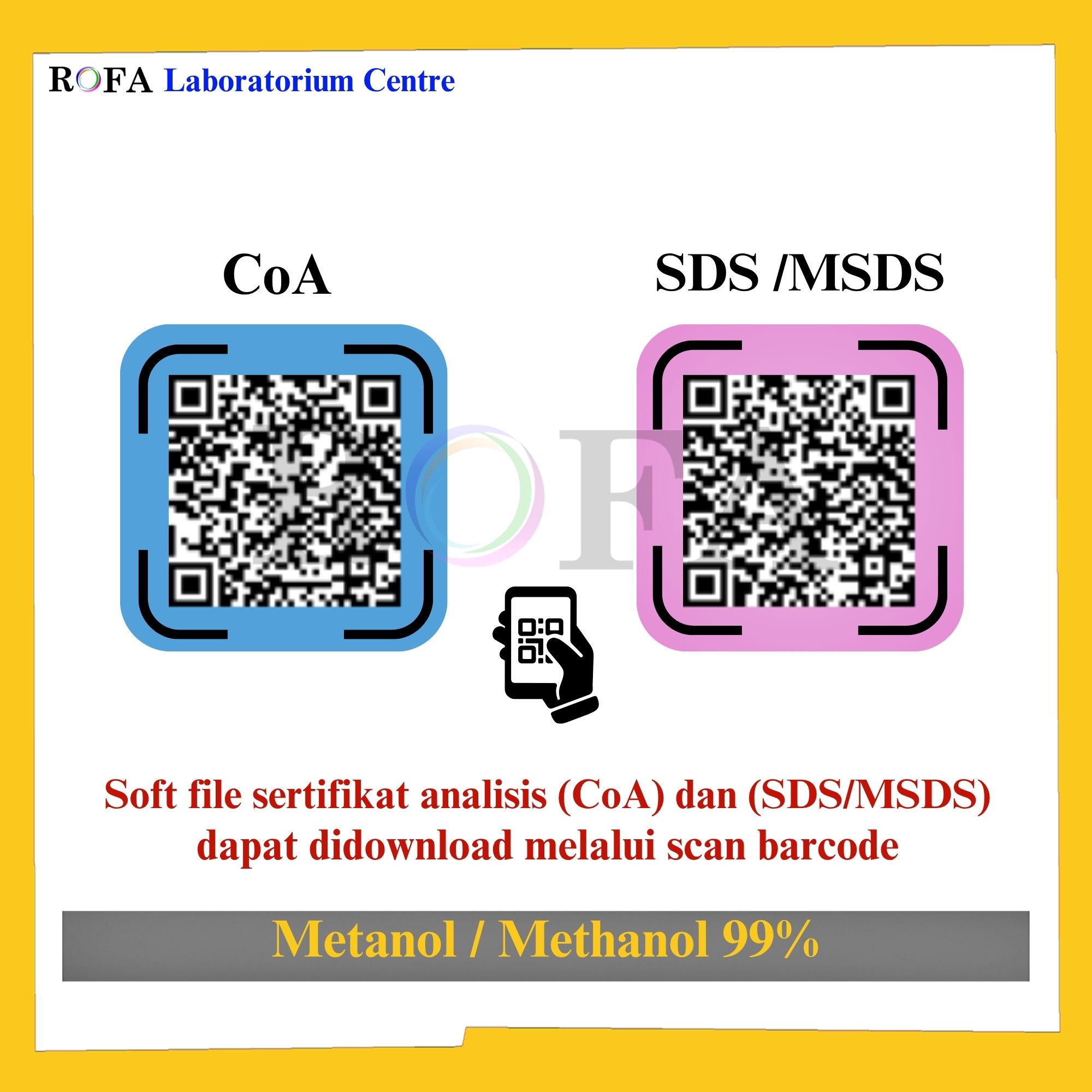 Lengkap dengan dokumen sertifikat analisis (CoA) dan MSDS / SDS (dikirim bersama barang atau bisa scan barcode).