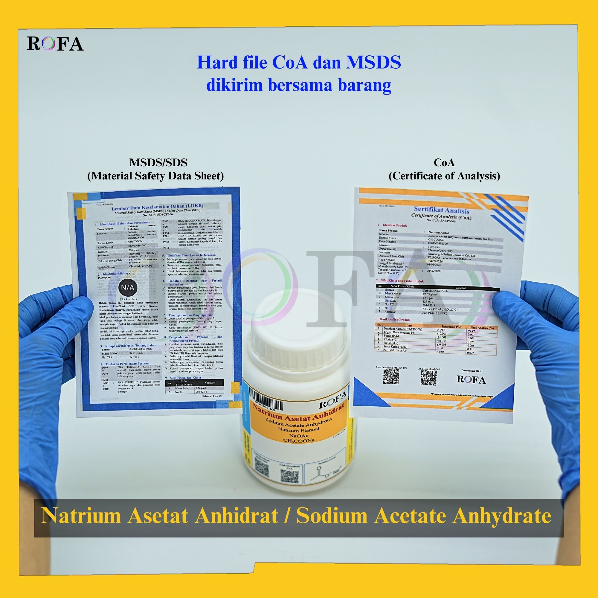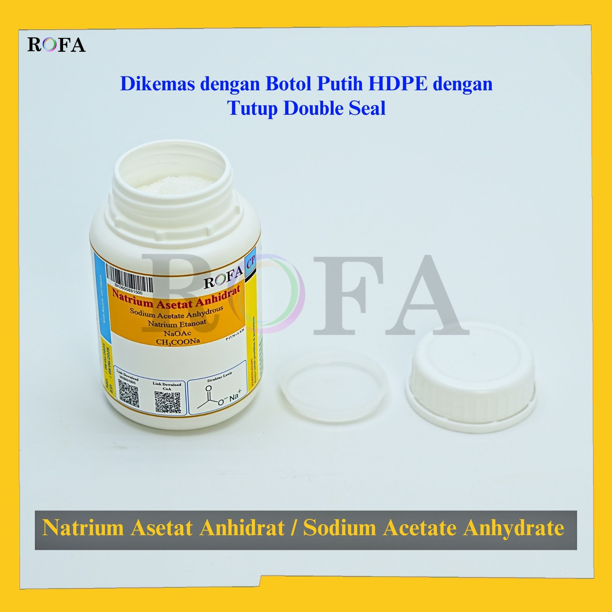 Nama Produk: ROFA Natrium Asetat Anhidrat / Sodium Acetate Anhydrate / CH3COONa CP 500 Gram Brand / Merek: ROFA, Bandung NON CoA dan NON MSDS Dikemas dalam botol Plastik HDPE, aman untuk penyimpanan dan pengiriman...