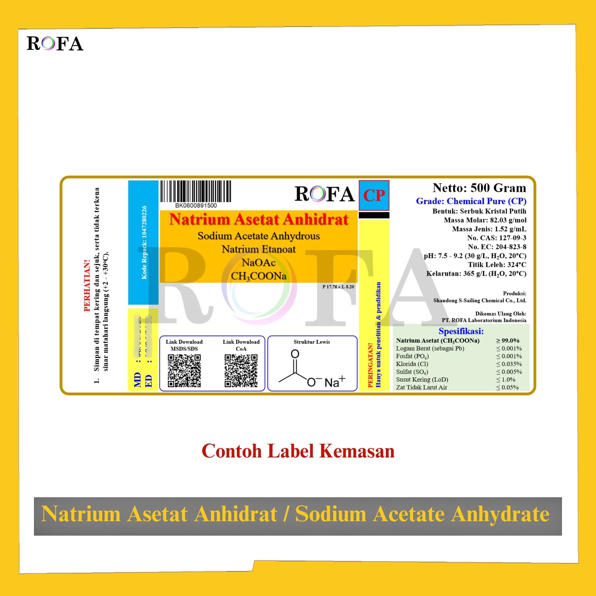 ROFA Natrium Asetat Anhidrat / Sodium Acetate Anhydrate / CH3COONa CP 500 Gram