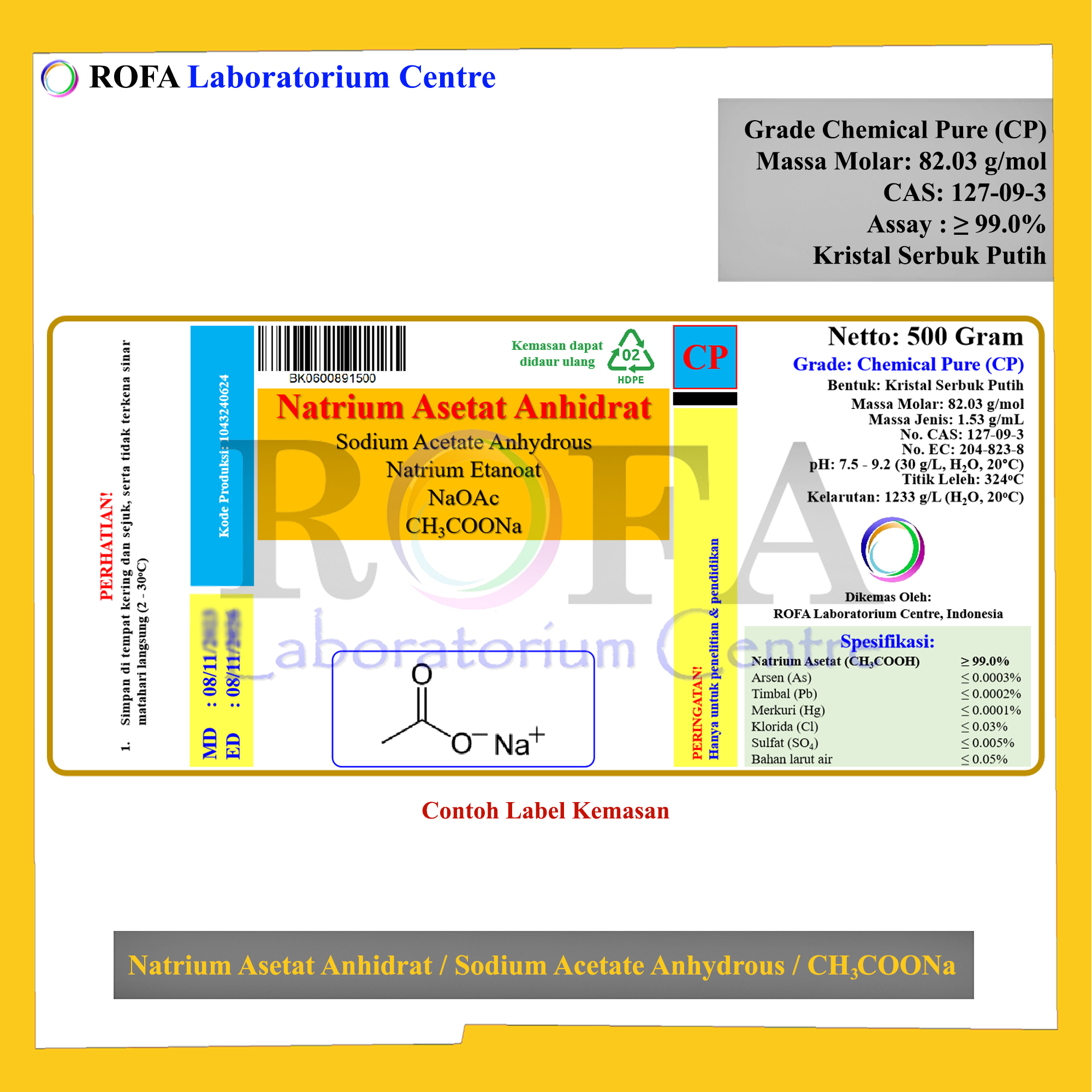 Nama Produk: ROFA Natrium Asetat Anhidrat / Sodium Acetate Anhydrate / CH3COONa CP 500 Gram