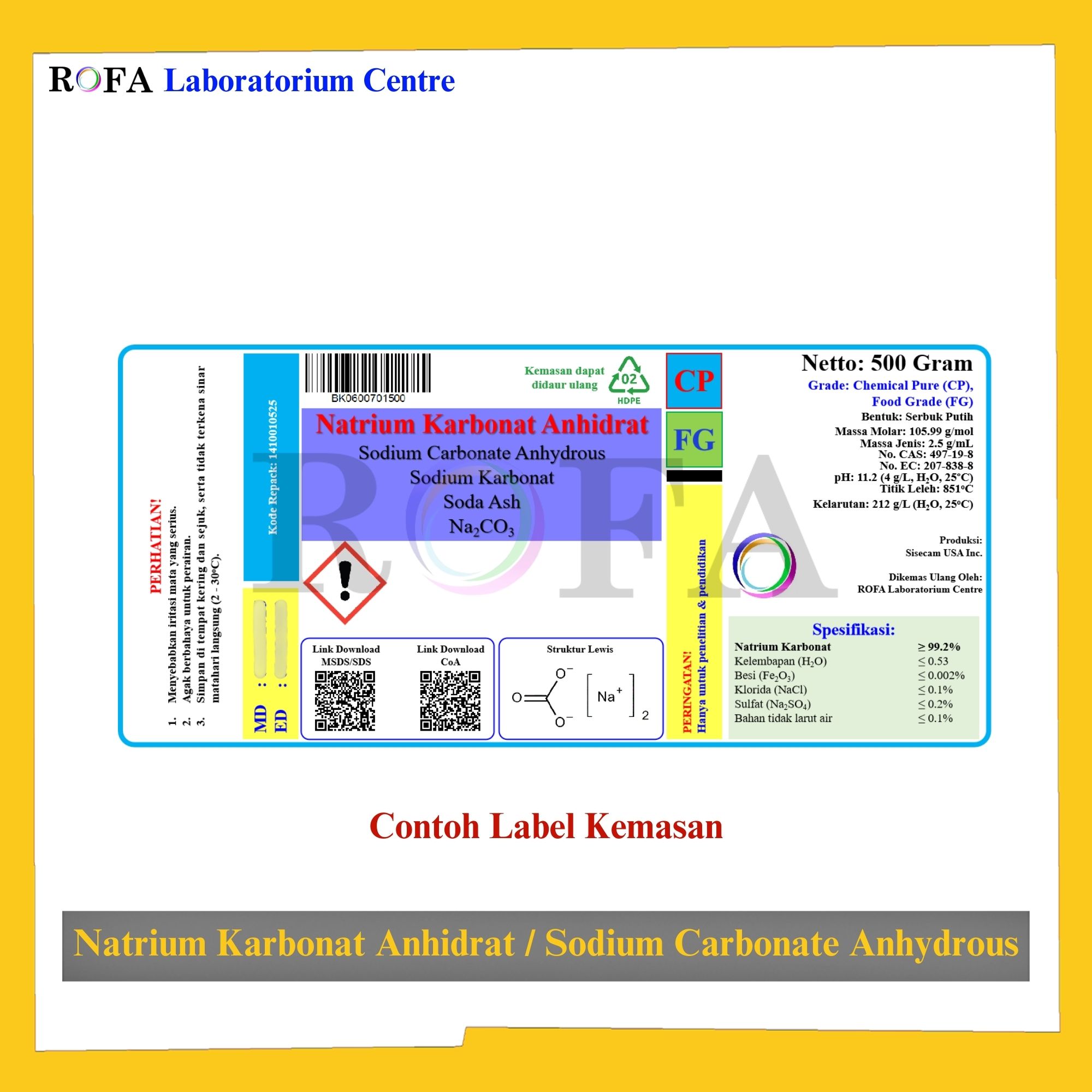 Nama Produk: ROFA Natrium Karbonat Anhidrat / Sodium Carbonate Anhydrous / Soda Ash / Na2CO3 CP 500 Gram