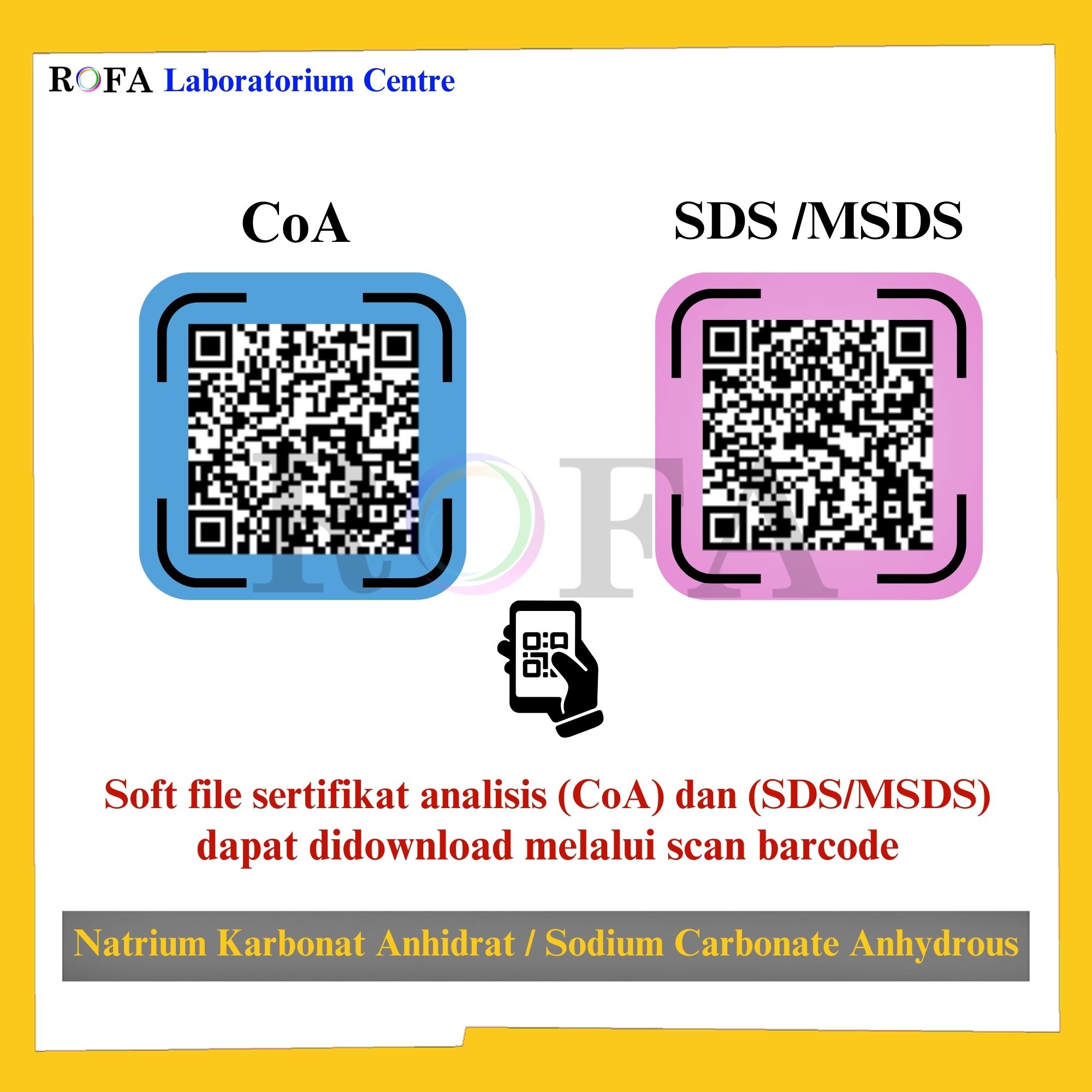 Nama Produk: ROFA Natrium Karbonat Anhidrat / Sodium Carbonate Anhydrous / Soda Ash / Na2CO3 CP 500 Gram Merek / Brand: ROFA, Bandung Lengkap dengan dokumen sertifikat analisis (CoA) dan MSDS / SDS (dikirim bersama...