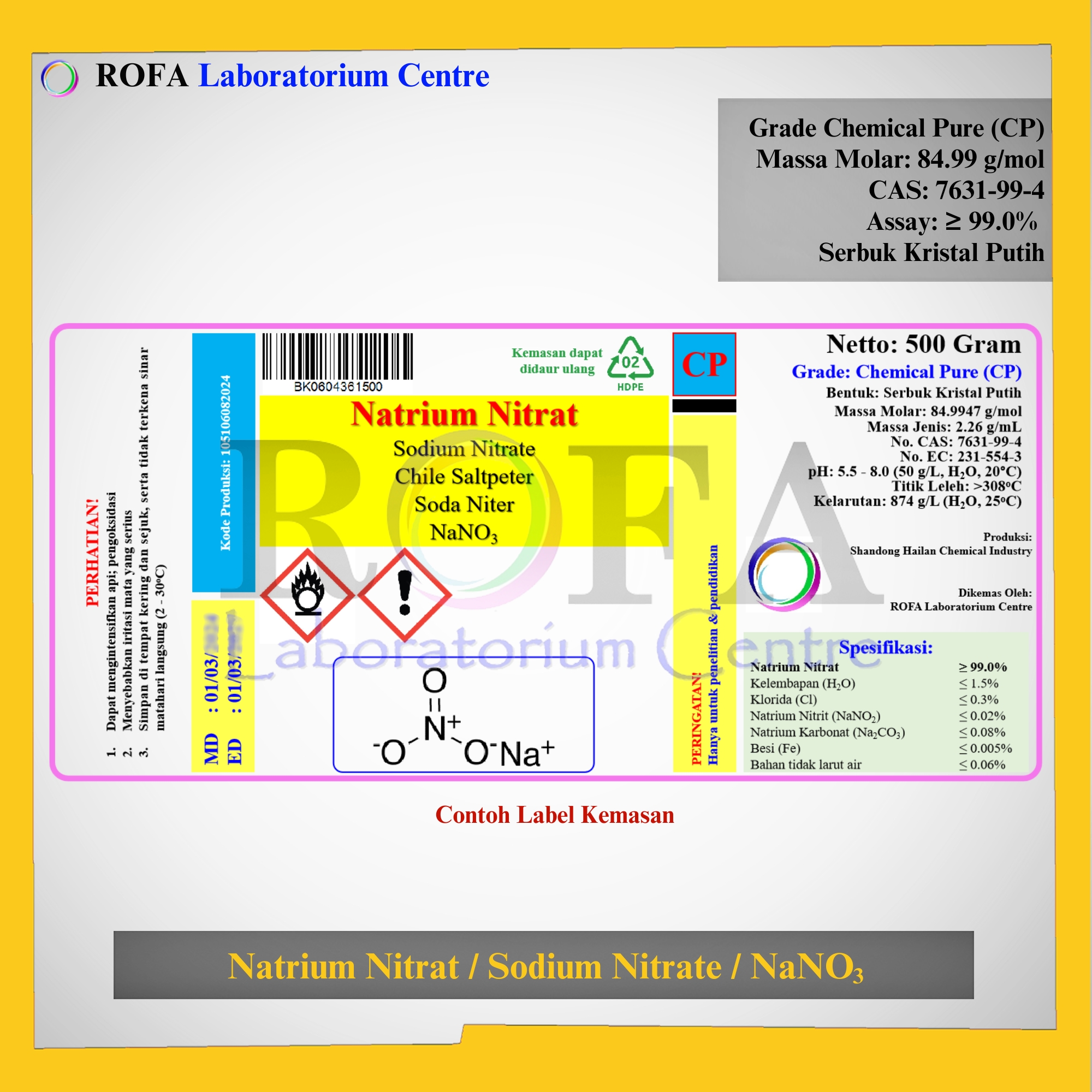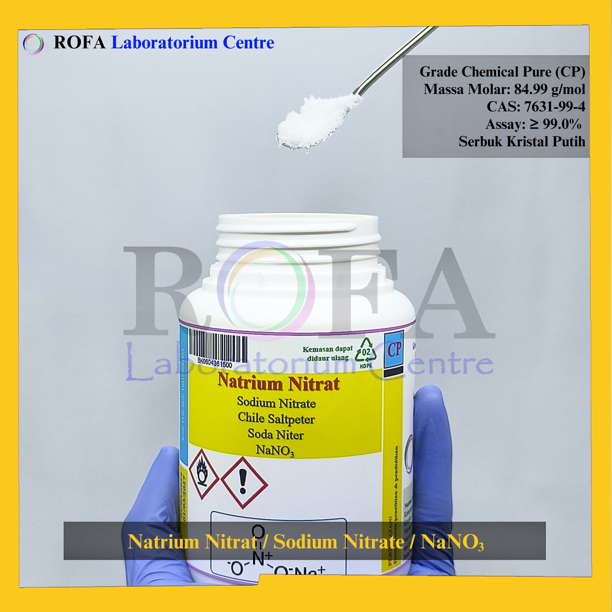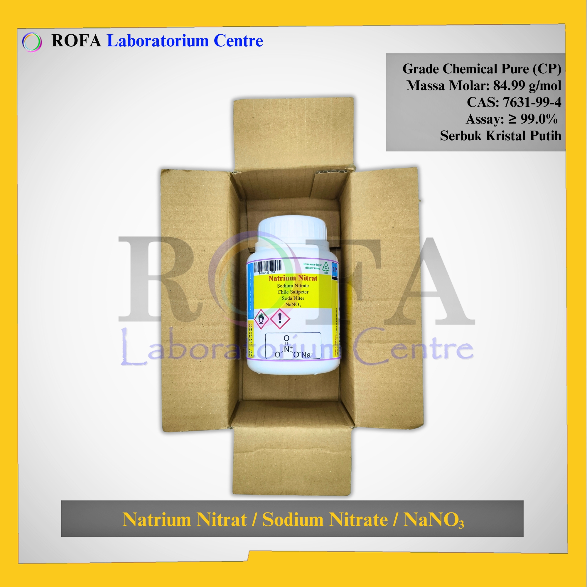 Nama Produk: ROFA Natrium Nitrat / Sodium Nitrate / NaNO3 CP 500 Gram