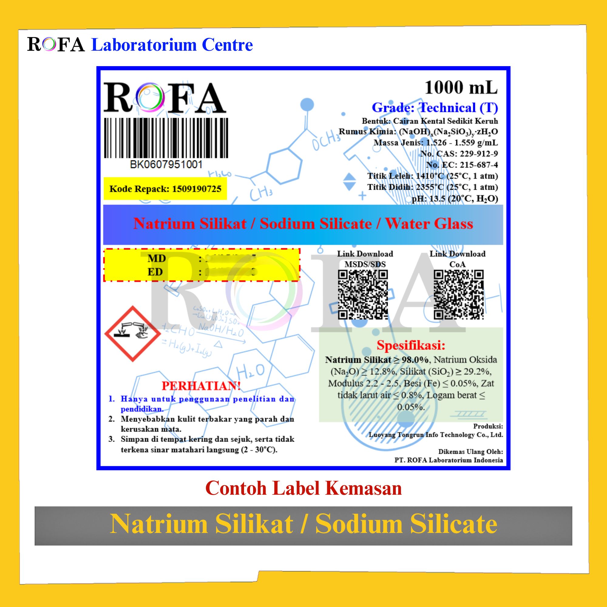Nama Produk: ROFA Natrium Silikat / Sodium Silicate / Waterglass / Na2SiO3 1000 mL Merek / Brand: ROFA, Bandung Lengkap dengan dokumen sertifikat analisis (CoA) dan MSDS / SDS (dikirim bersama barang atau bisa scan...