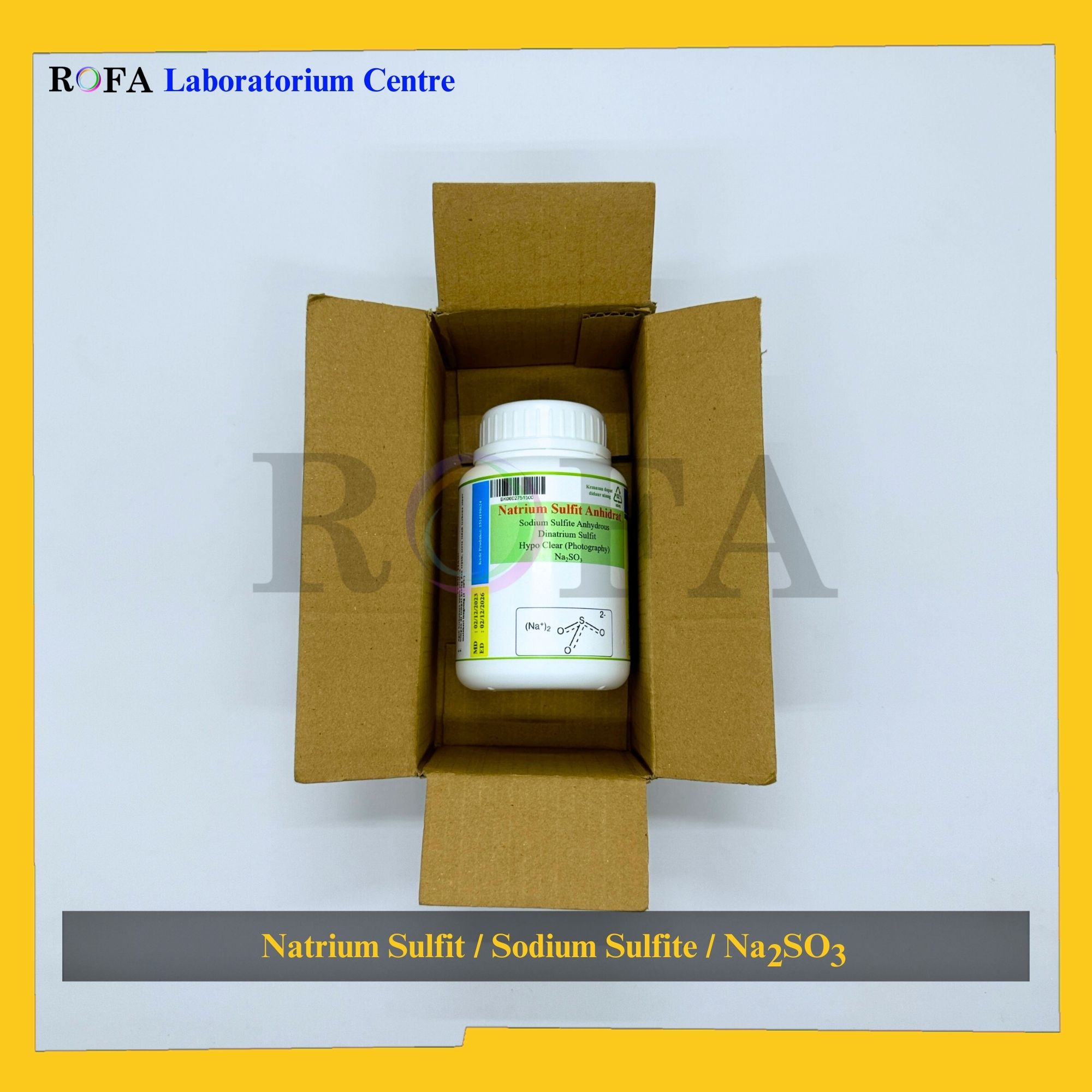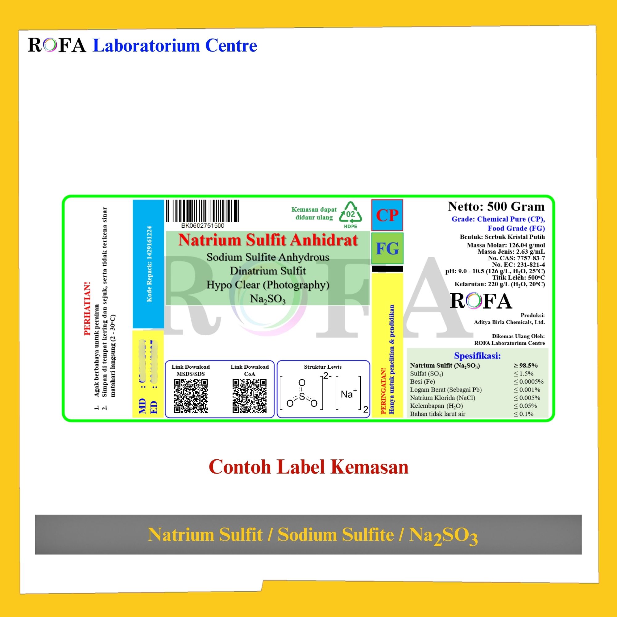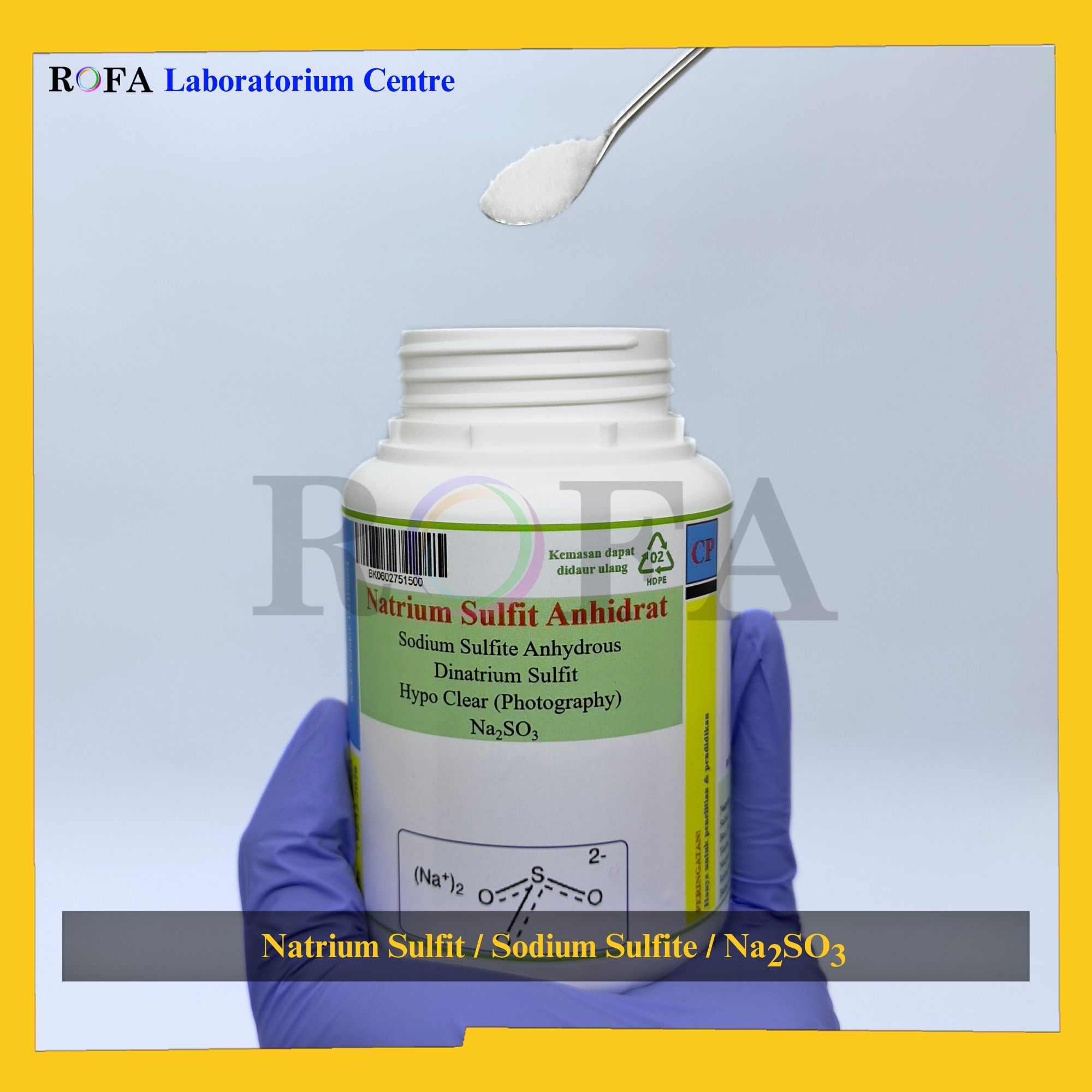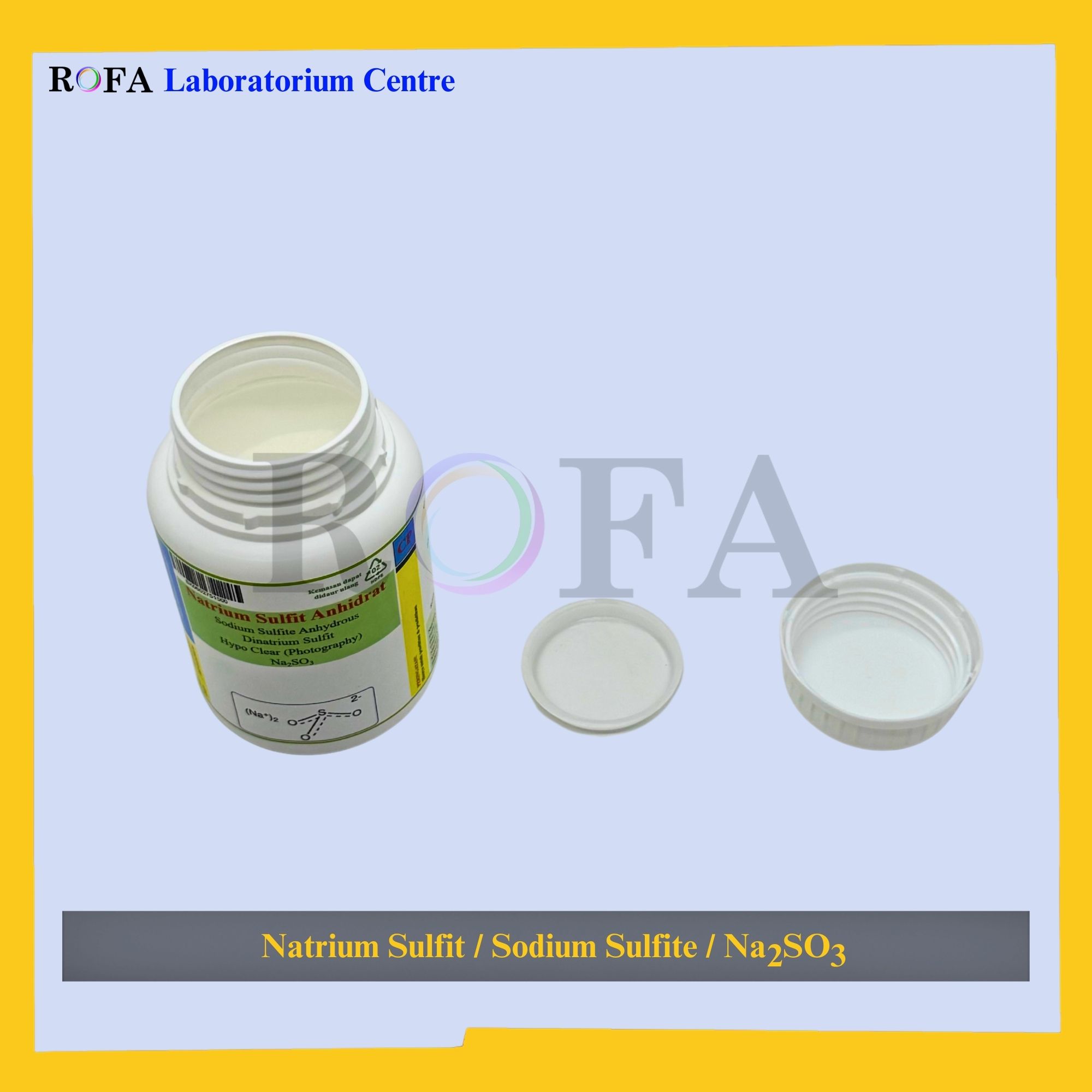 Nama Produk: ROFA Natrium Sulfit Anhidrat / Sodium Sulfite Anhydrous / Dinatrium Sulfit / Na2SO3 CP 500 Gram