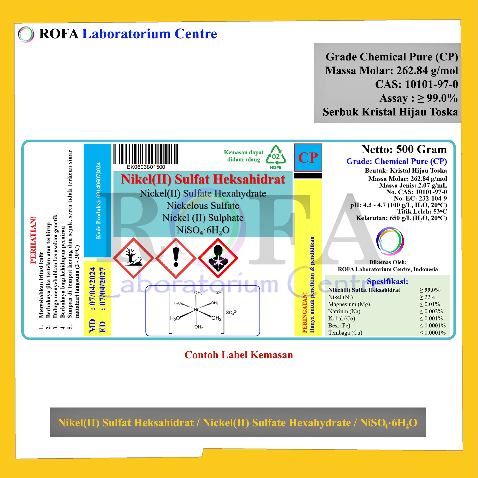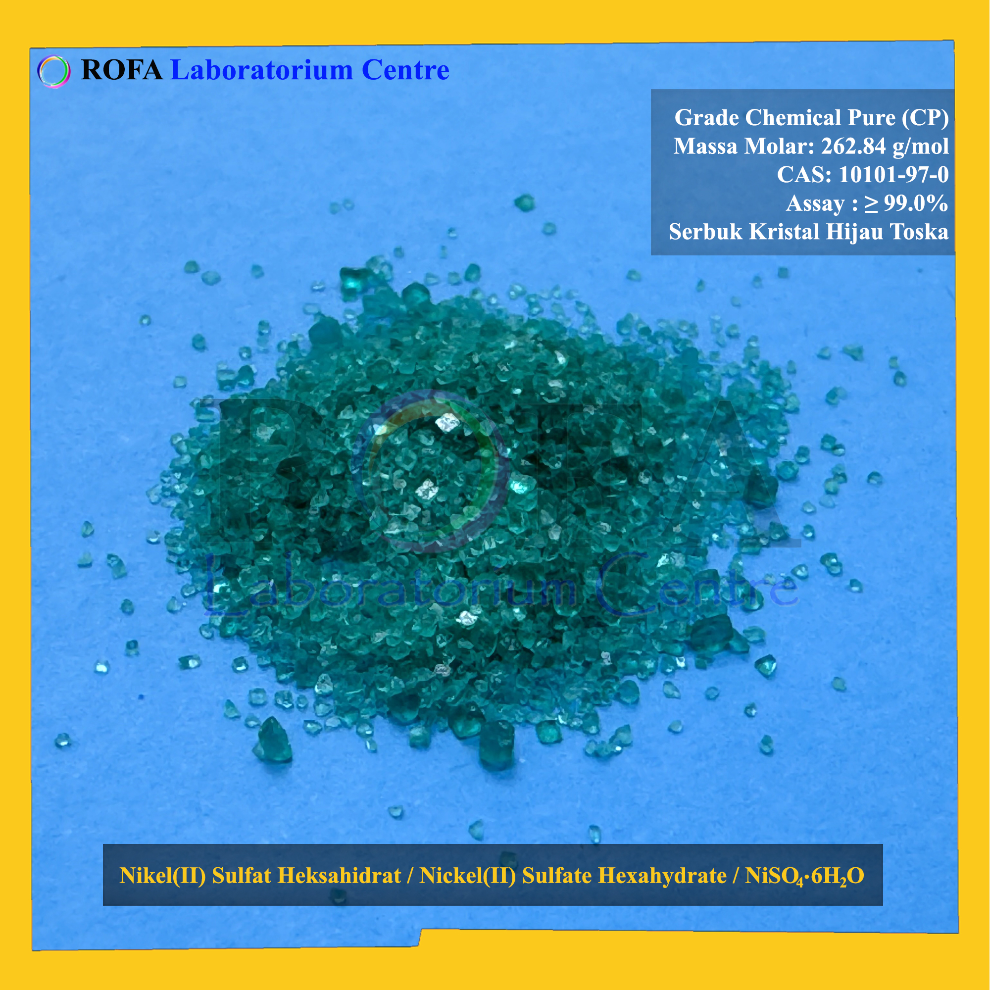 Nama Produk: ROFA Nikel(II) Sulfat Heksahidrat / Nickel(II) Sulfate Hexahydrate / NiSO4·6H2O CP 500 Gram