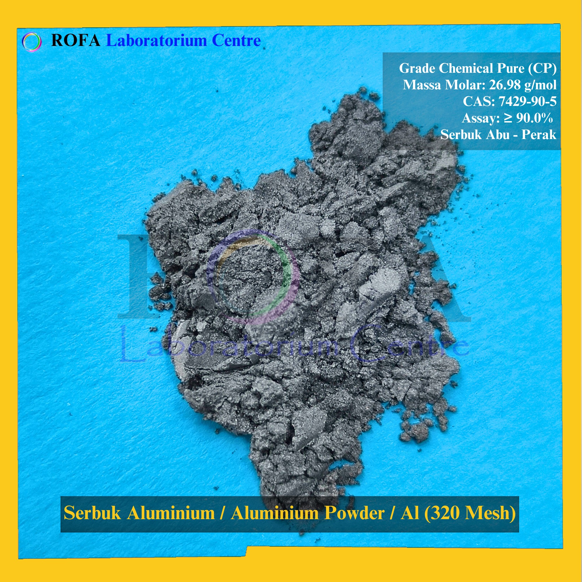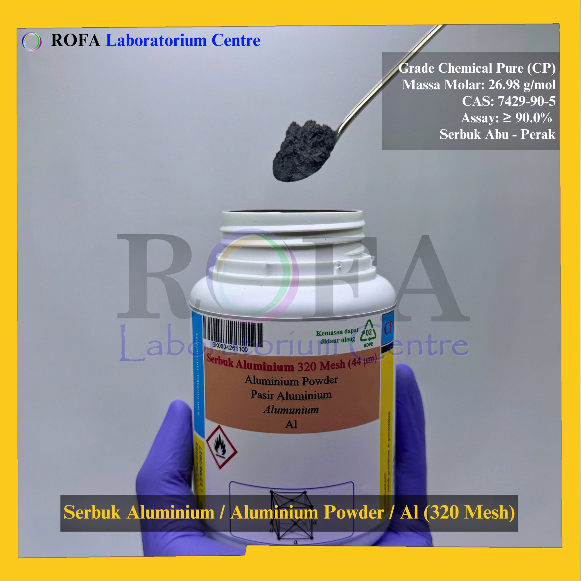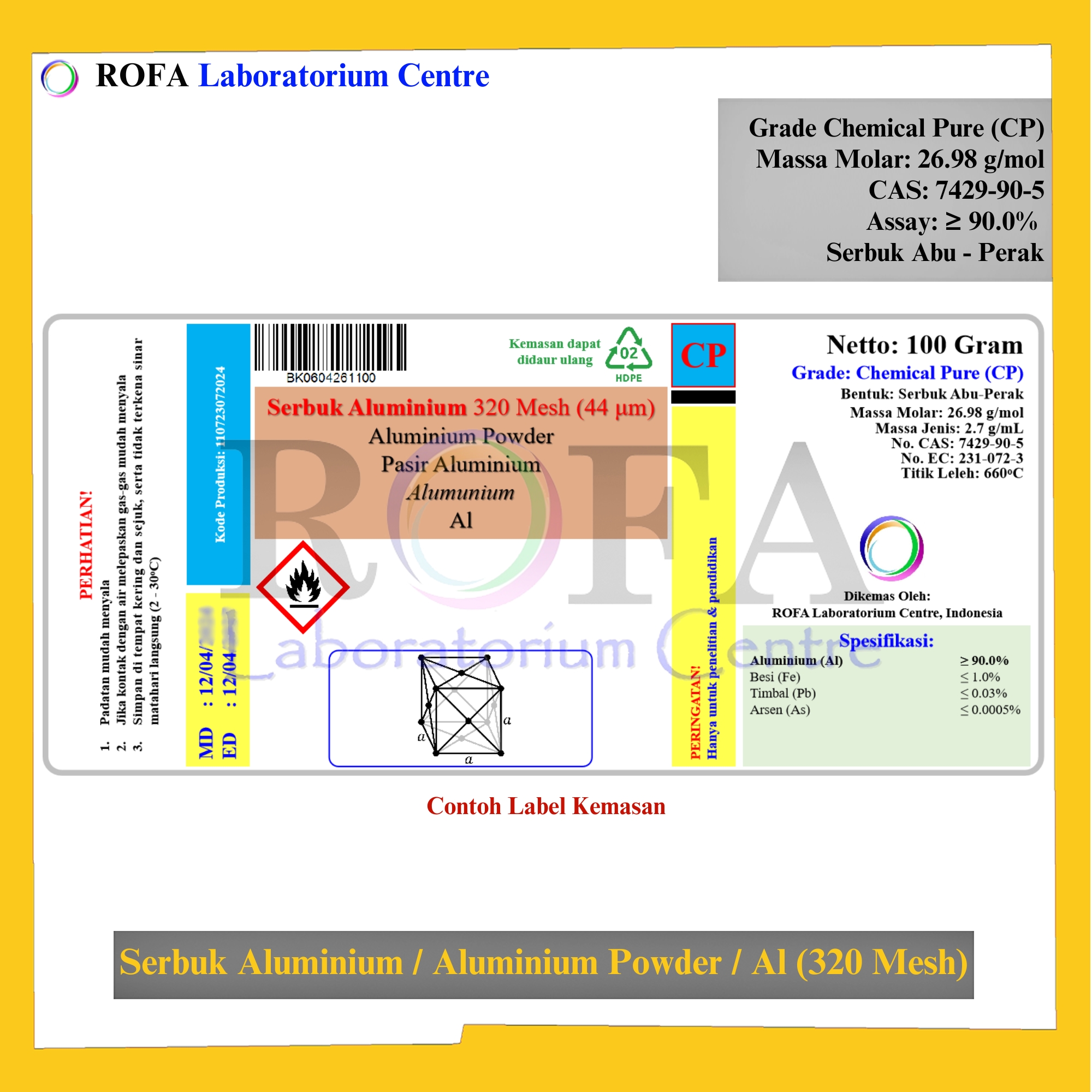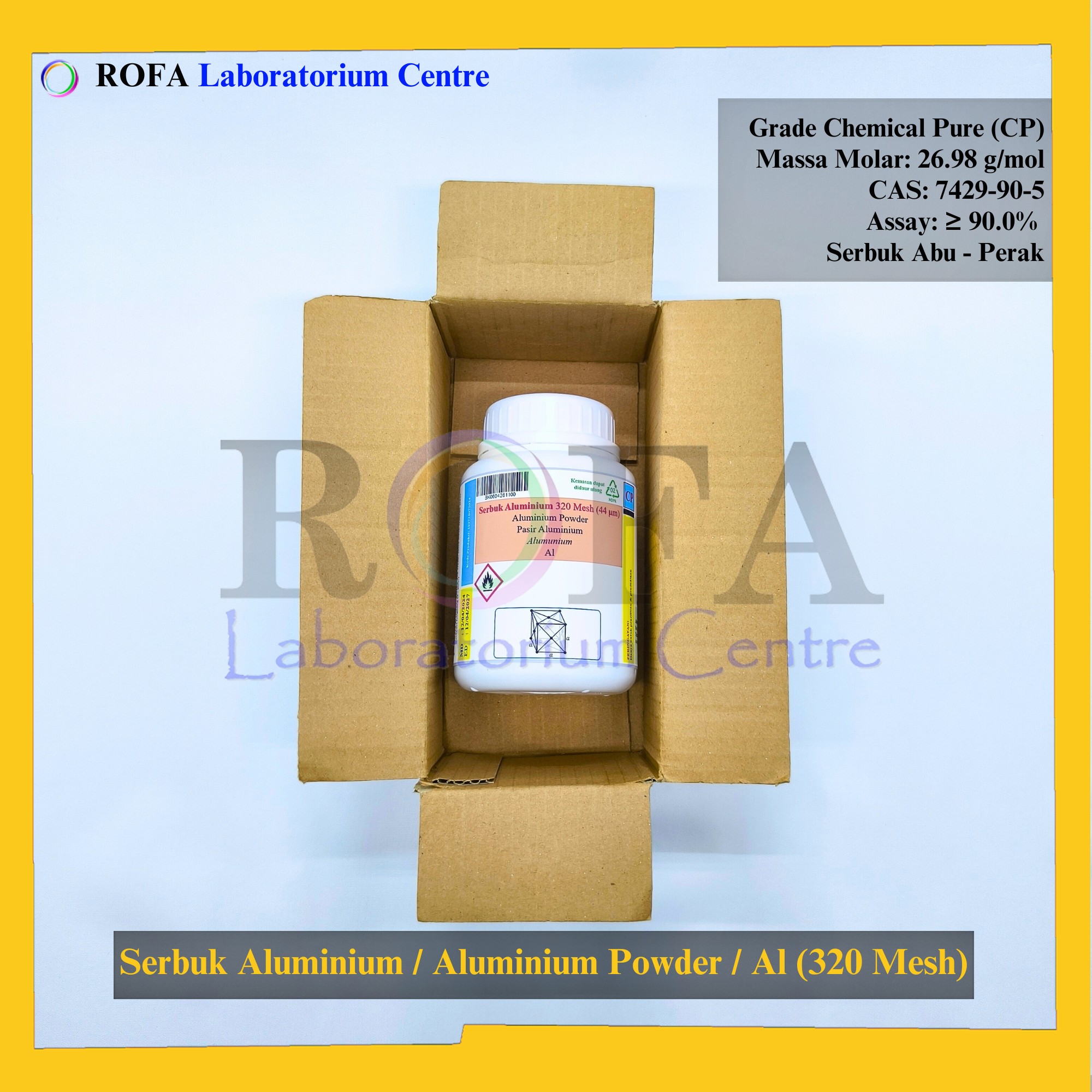 Nama Produk: ROFA Serbuk Aluminium 320 Mesh / Aluminium Powder / Al CP 100 Gram Brand / Merek: ROFA, Bandung NON CoA NON MSDS   SPESIFIKASI: Rumus Kimia: Al Netto: 100 gram/botol Grade: CP (Chemical...