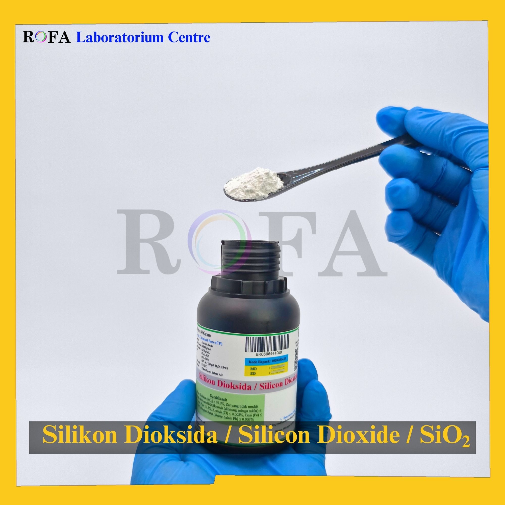Nama Produk: ROFA Silikon Dioksida / Silicon Dioxide / Silica / Silica Sand / SiO2 CP 50 Gram   Lengkap dengan dokumen sertifikat analisis (CoA) dan MSDS / SDS (dikirim bersama barang atau bisa scan...