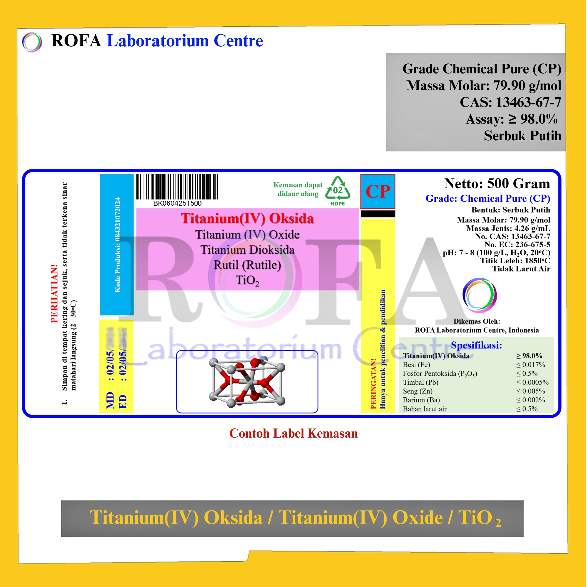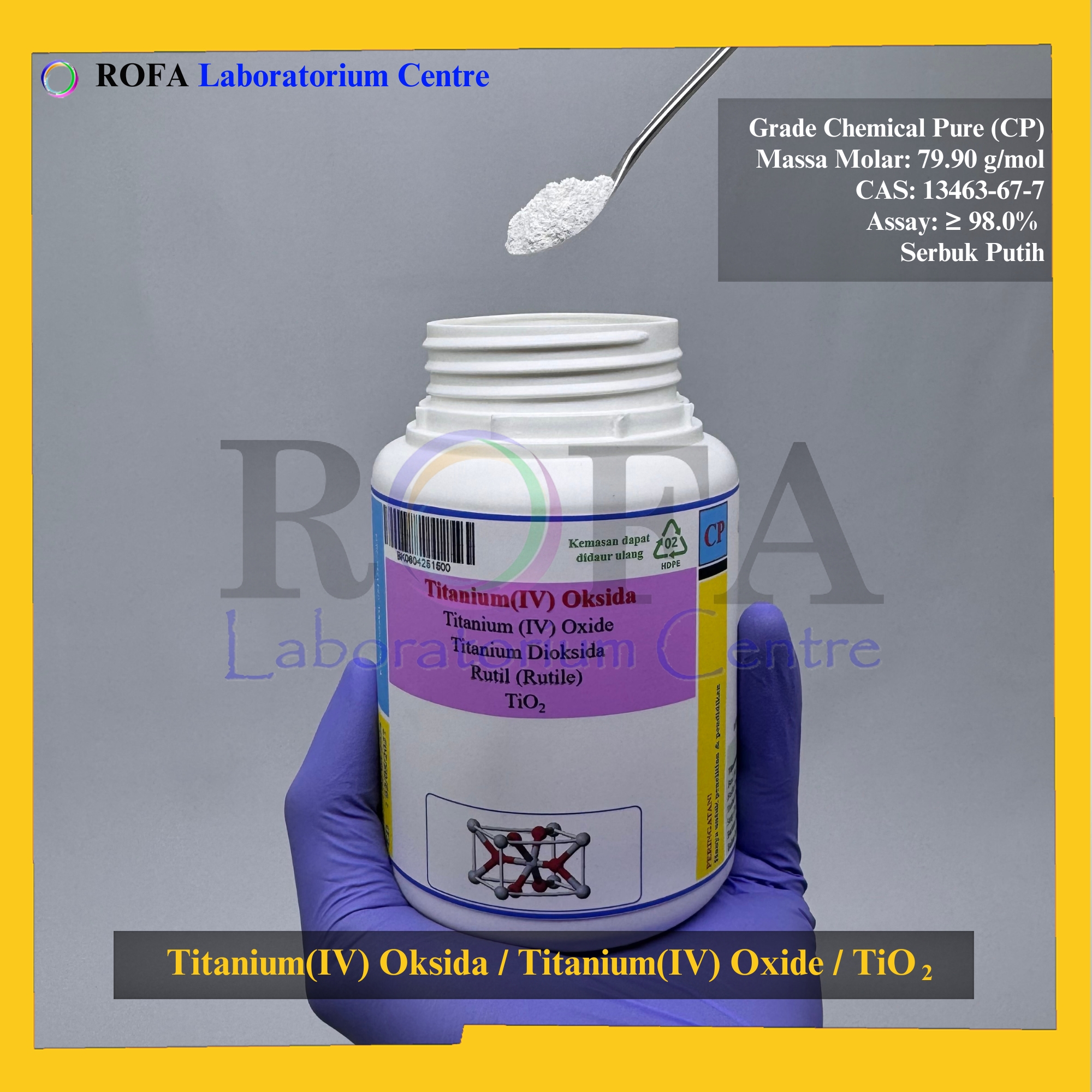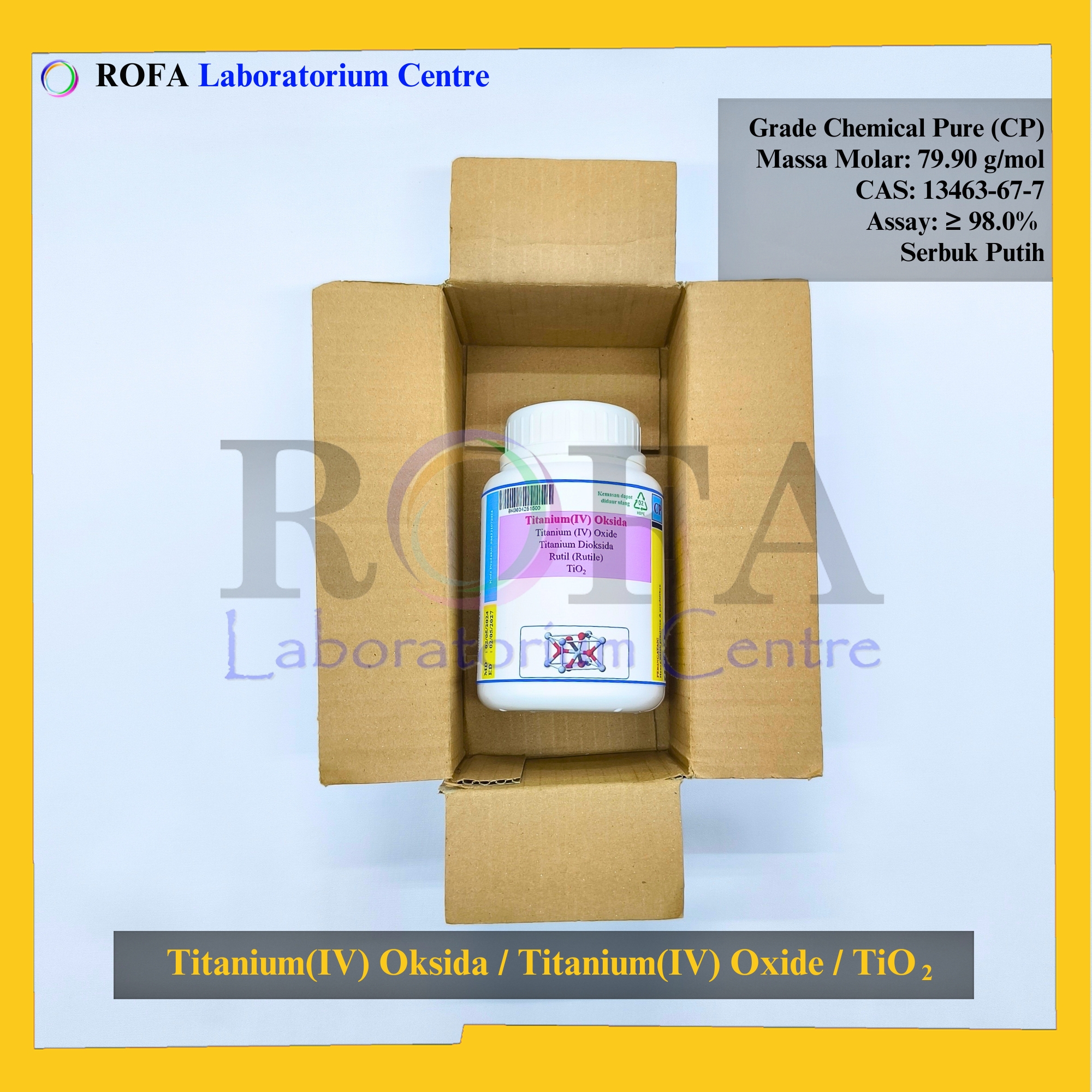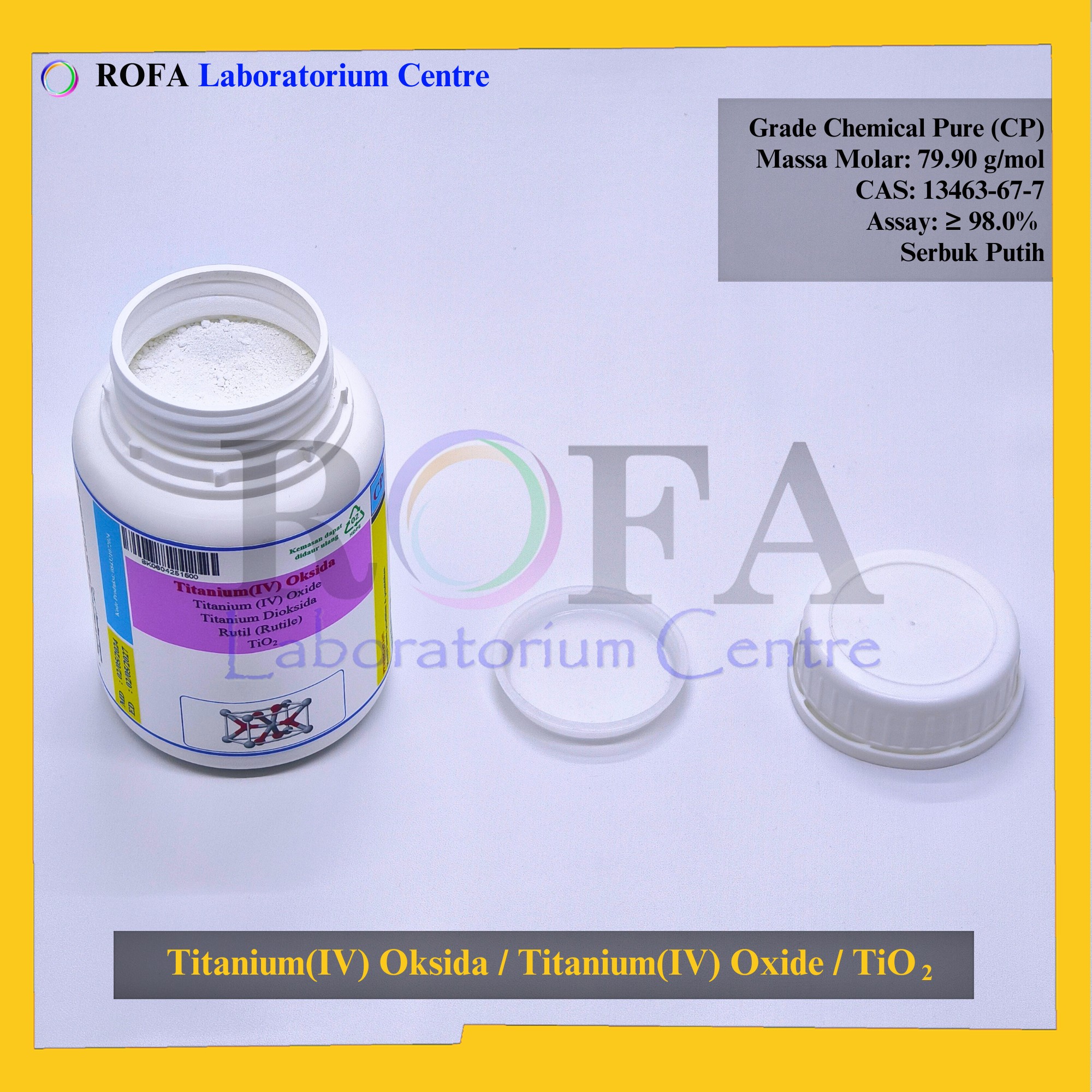 Nama Produk: ROFA Titanium(IV) Oksida / Titanium(IV) Oxide / Titanium Dioksida / TiO2 CP 500 Gram