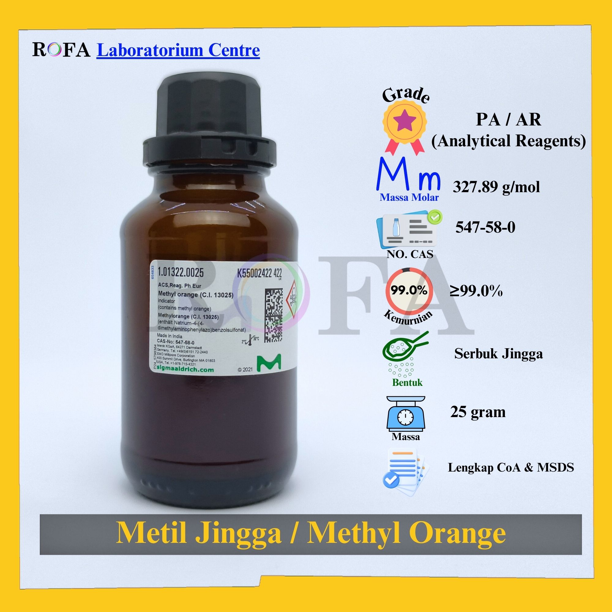 - Kemurnian/Kadar: min. 98.0%
