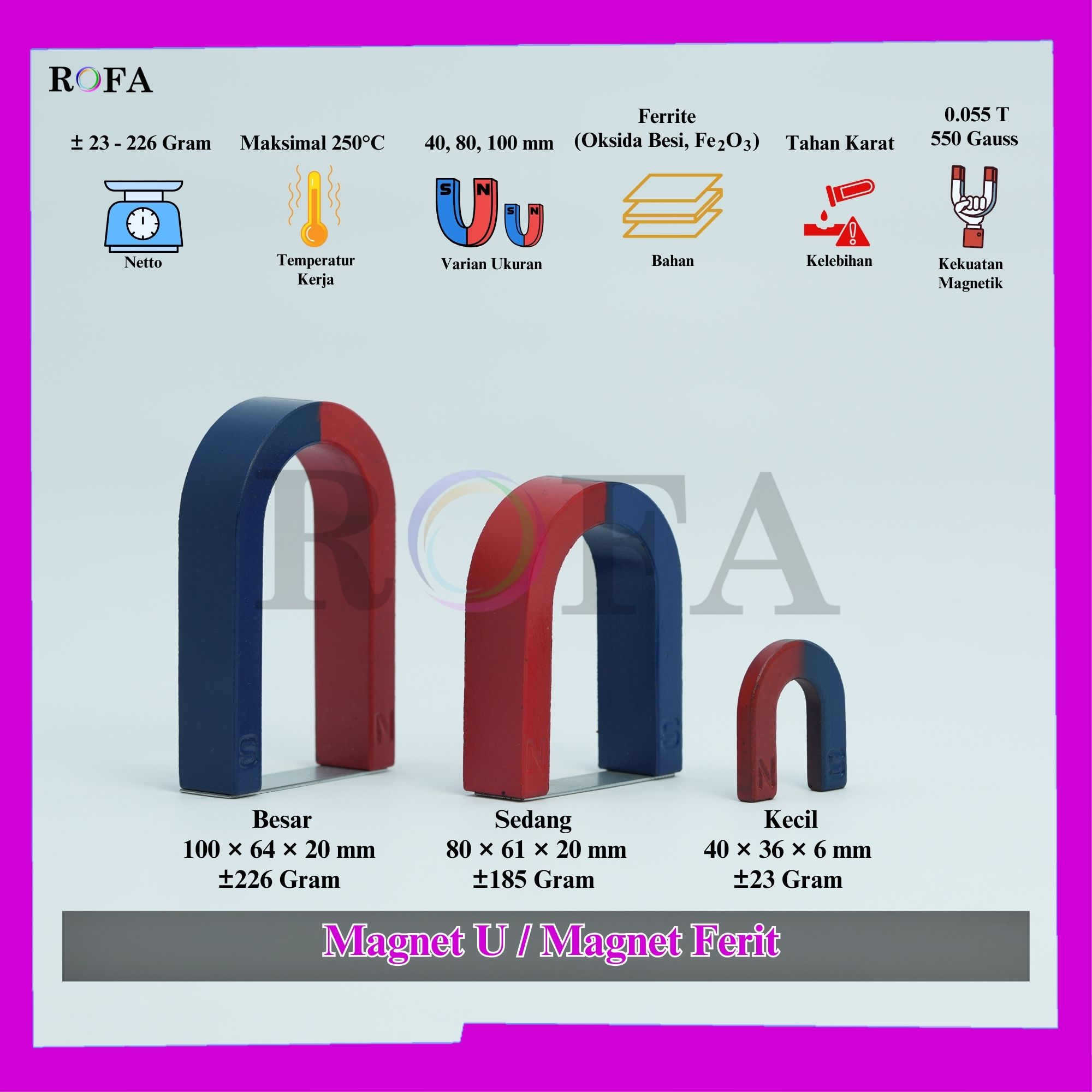 ROFA Magnet U / Magnet Ferit / Horseshoe Magnet / Magnet Ladam / Magnet Tapal Kuda