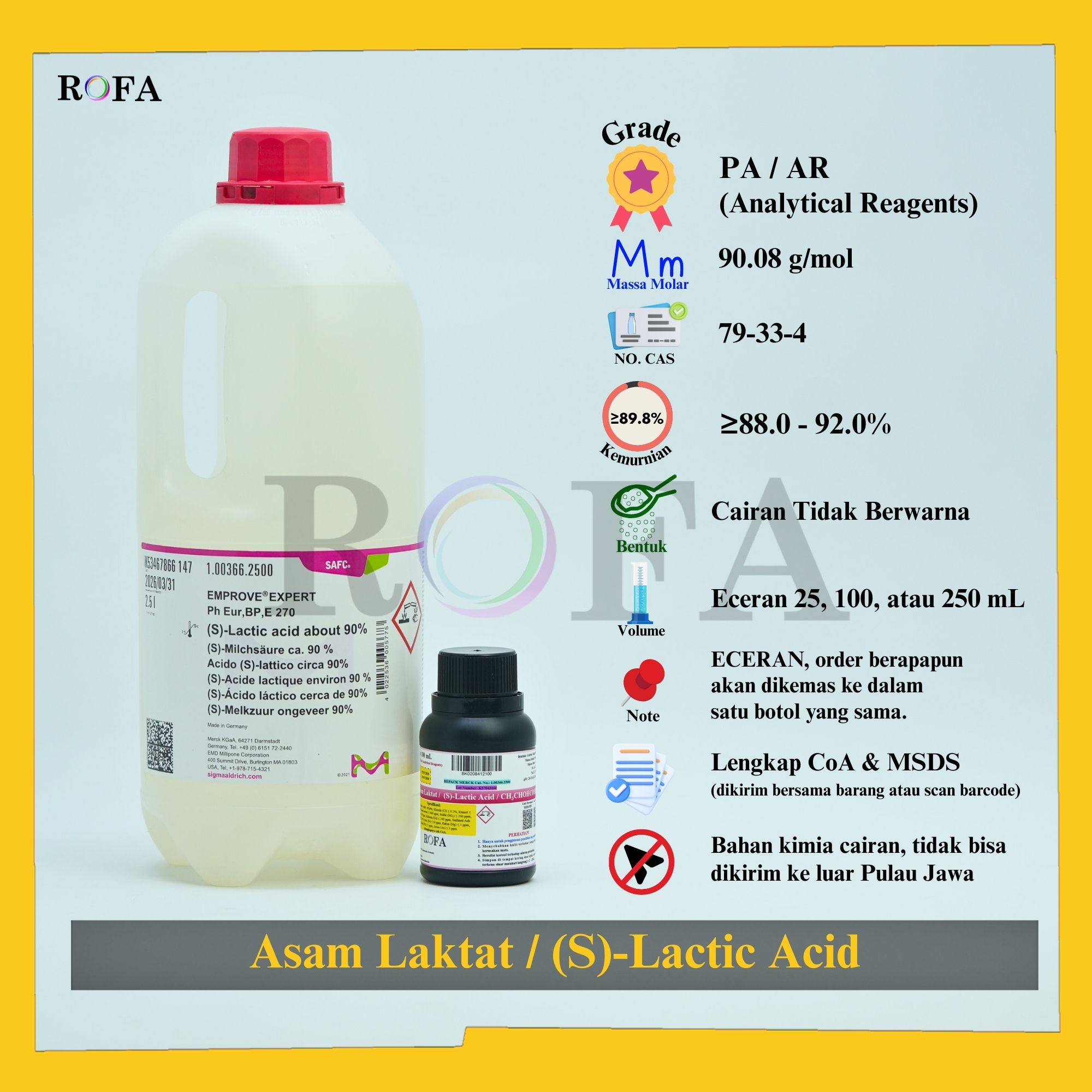 MERCK Asam Laktat / Lactic Acid / C3H6O3 90% Pro Analisis Eceran 25 – 500 mL